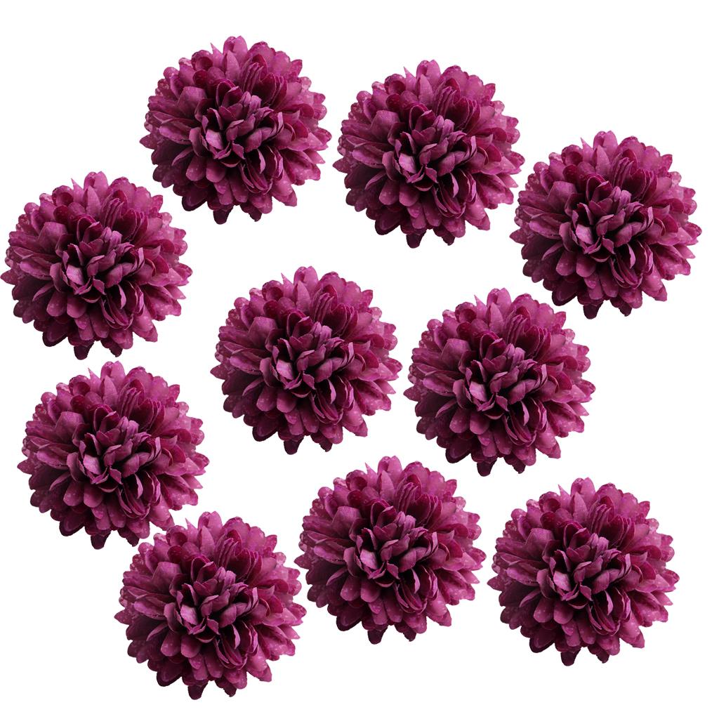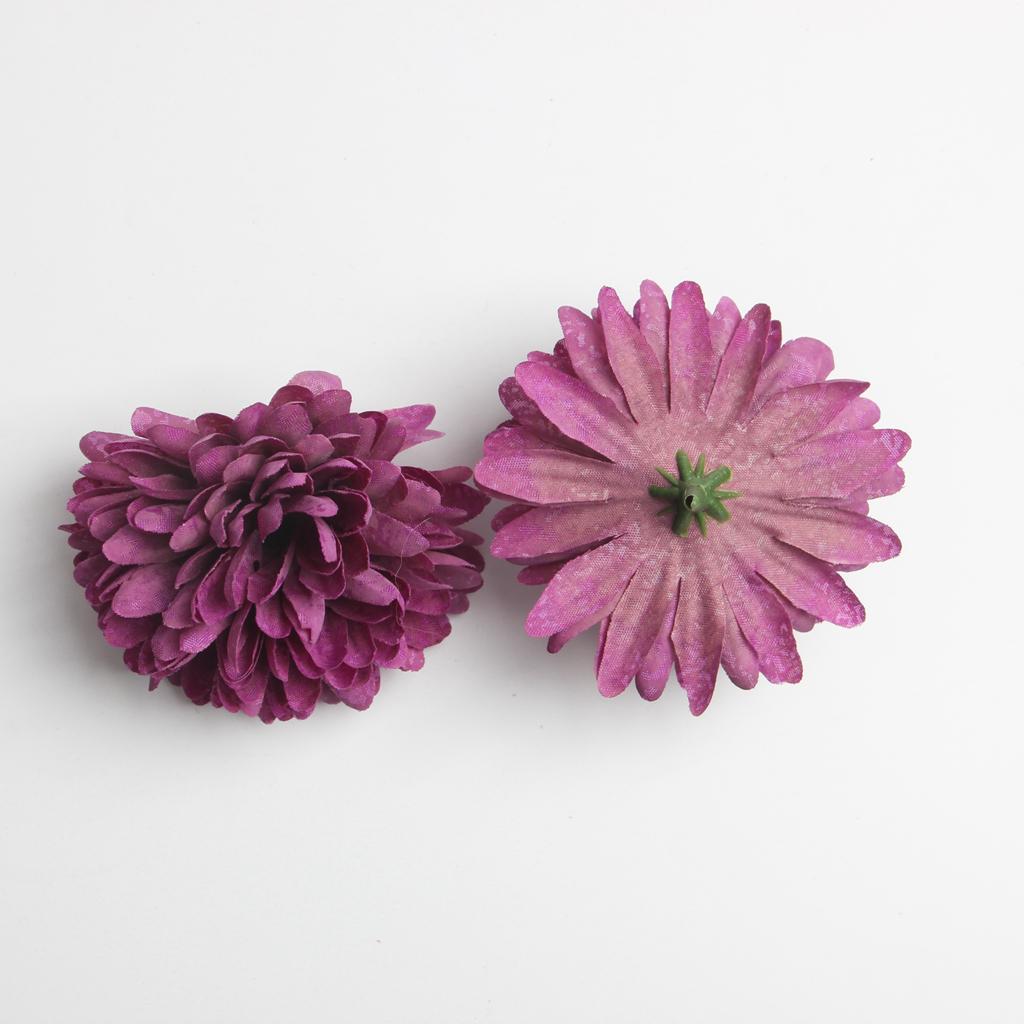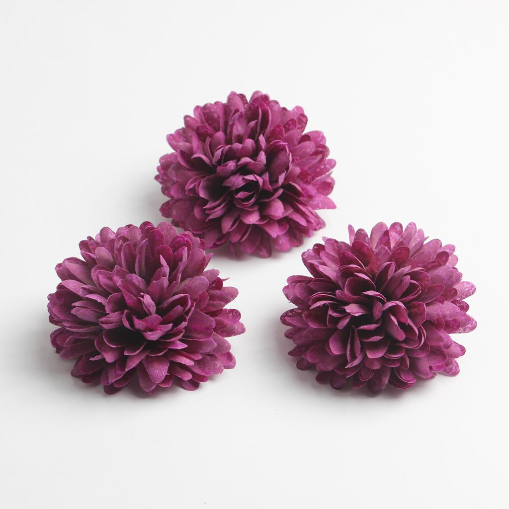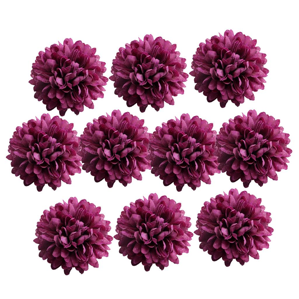 10pcs Silk Artificial Chrysanthemum Flower Heads for DIY Decor Purplish Red
