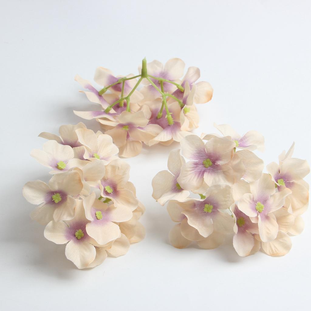 10pcs Silk Hydrangea Flower Heads for Bridal Wedding Decor Cream