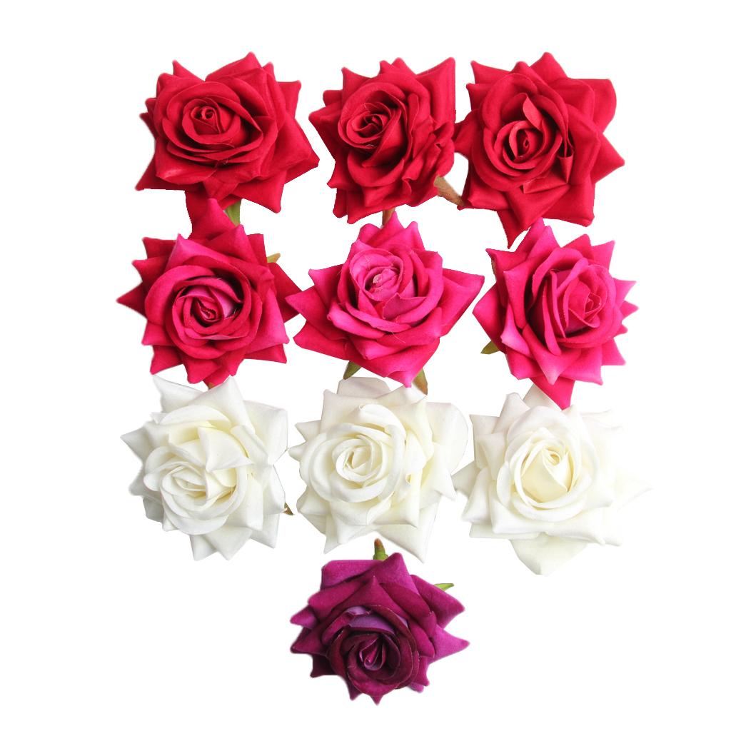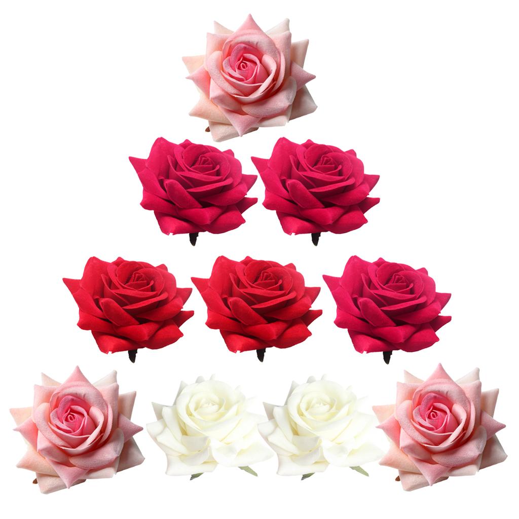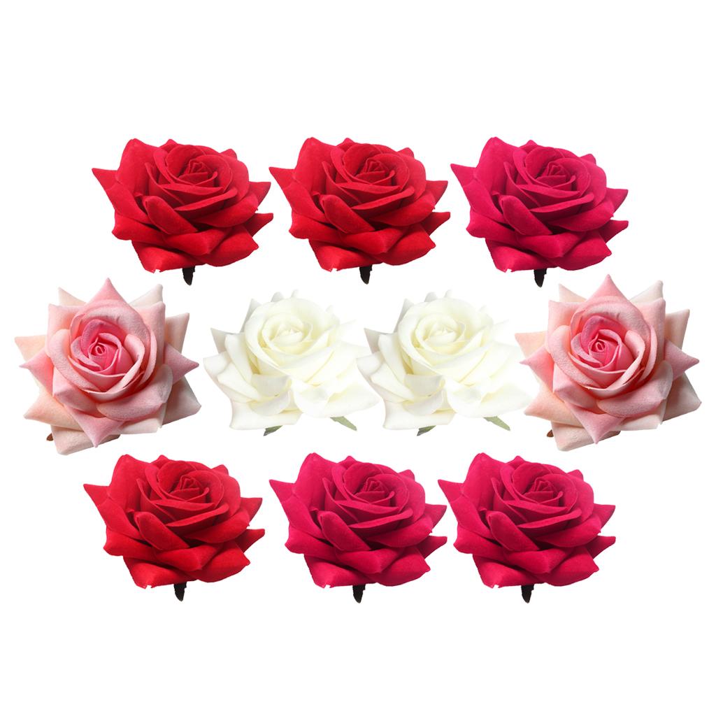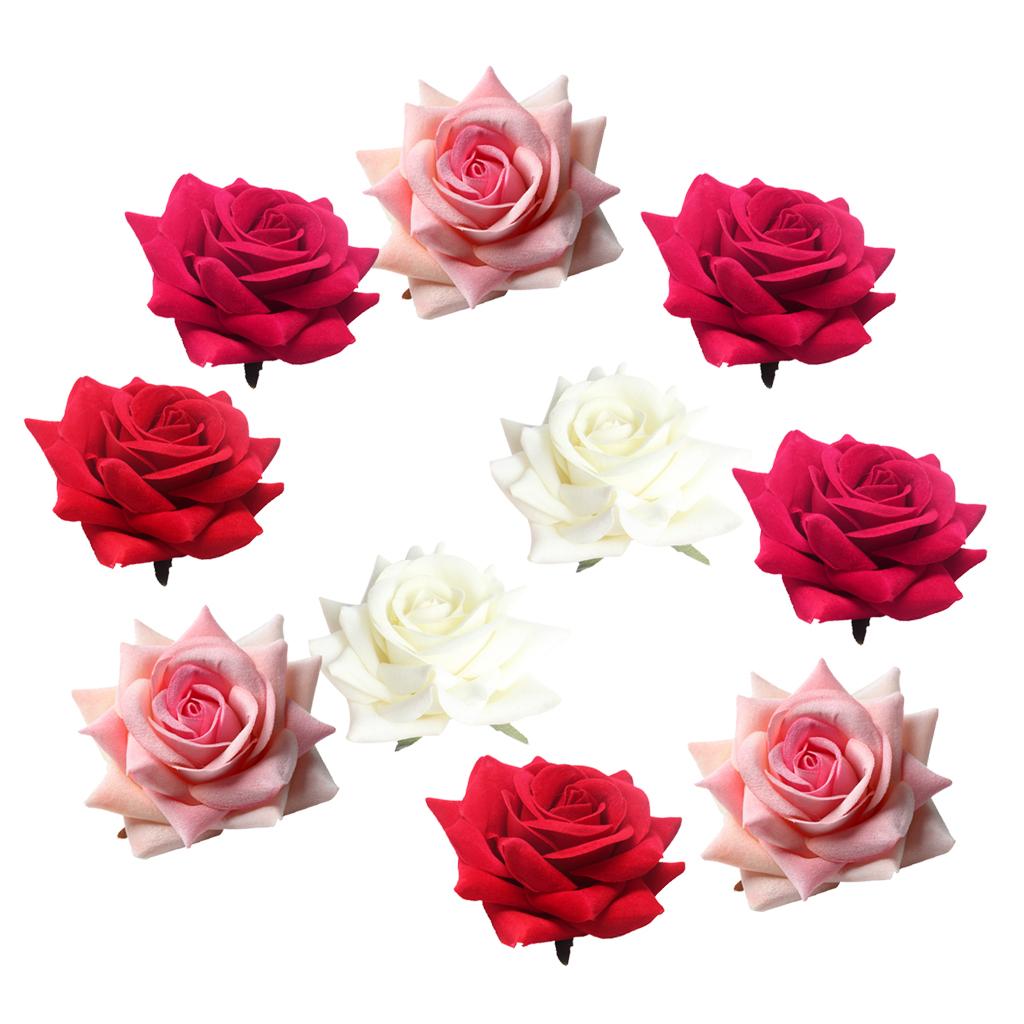 10pcs Velvet Artificial Flower Rose Heads for Home Wedding Decor Mixed