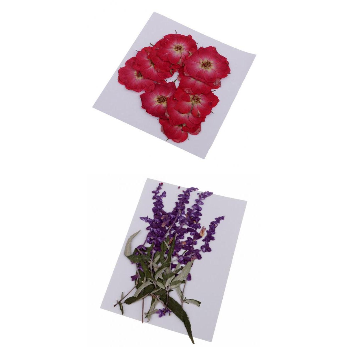 20 Pieces Assorted Pressed Flowers, Salvia Splendens var Atropurpurea and rose flowers, Real Pressed Dried Flowers for Scrapboking Card DIY Resin Jewelry Craft
