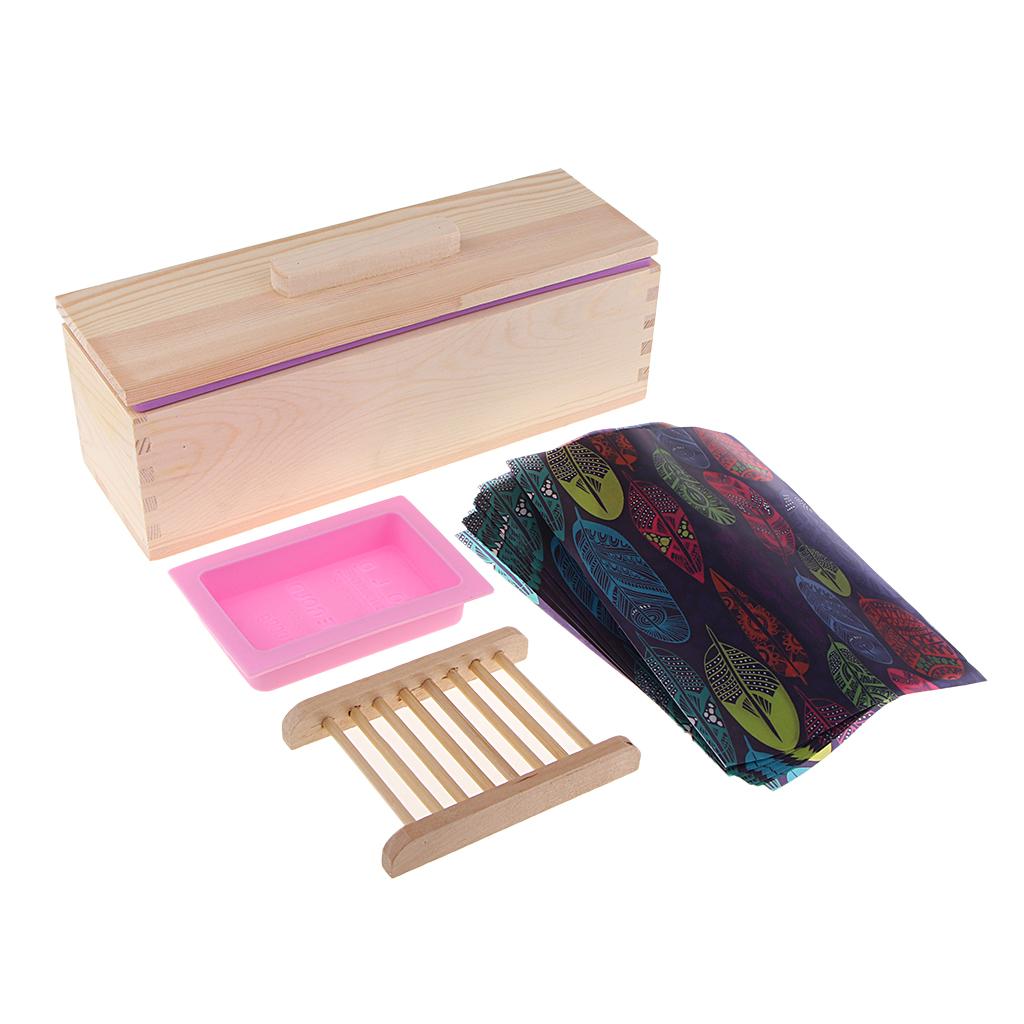 This tool kits include 1 sets (double hole )loaf silicone mold with wooden box and lid,1 piece soap mold ,1 piece bamboo soap holder and 1 pack of 20 pices oil paper.