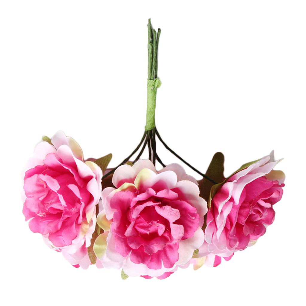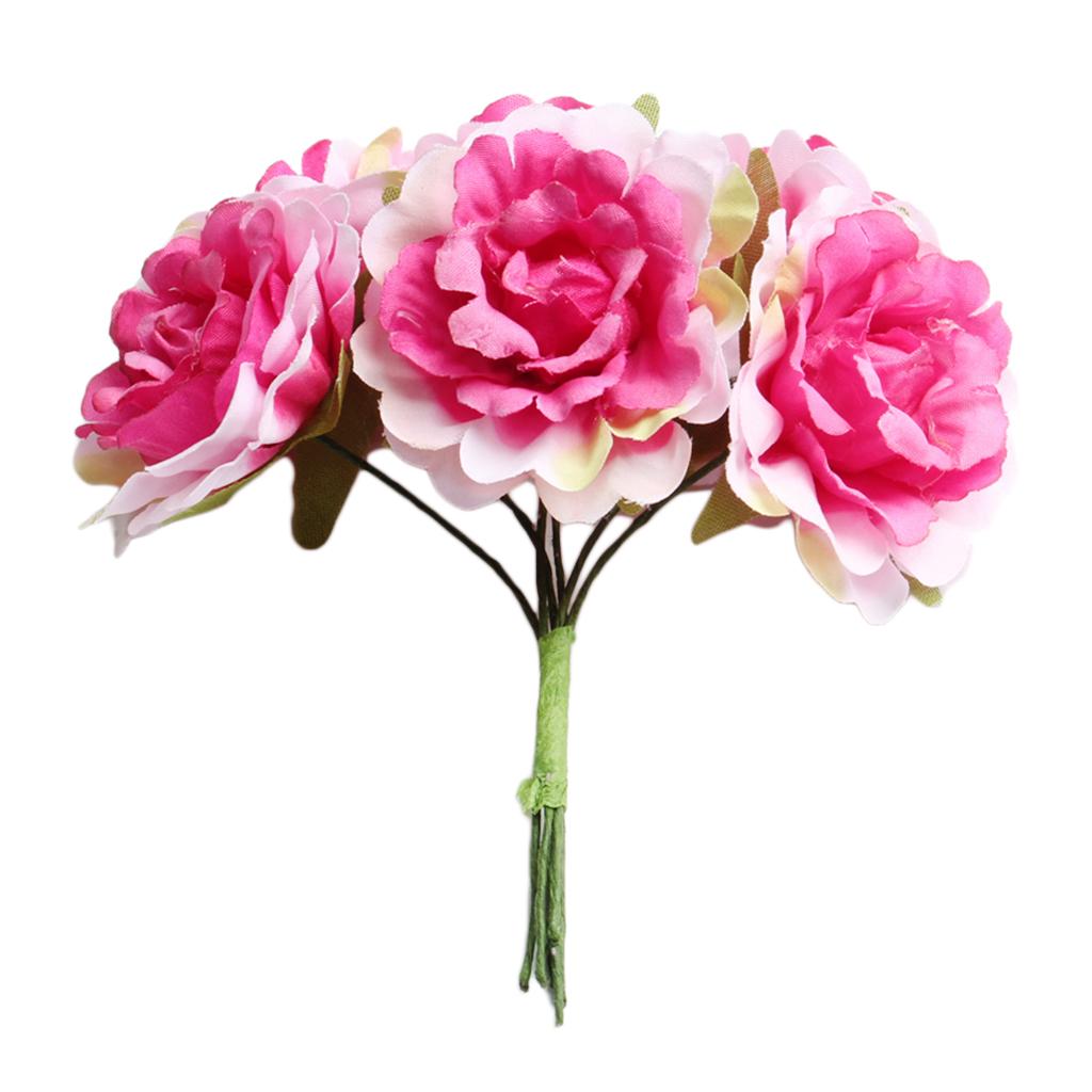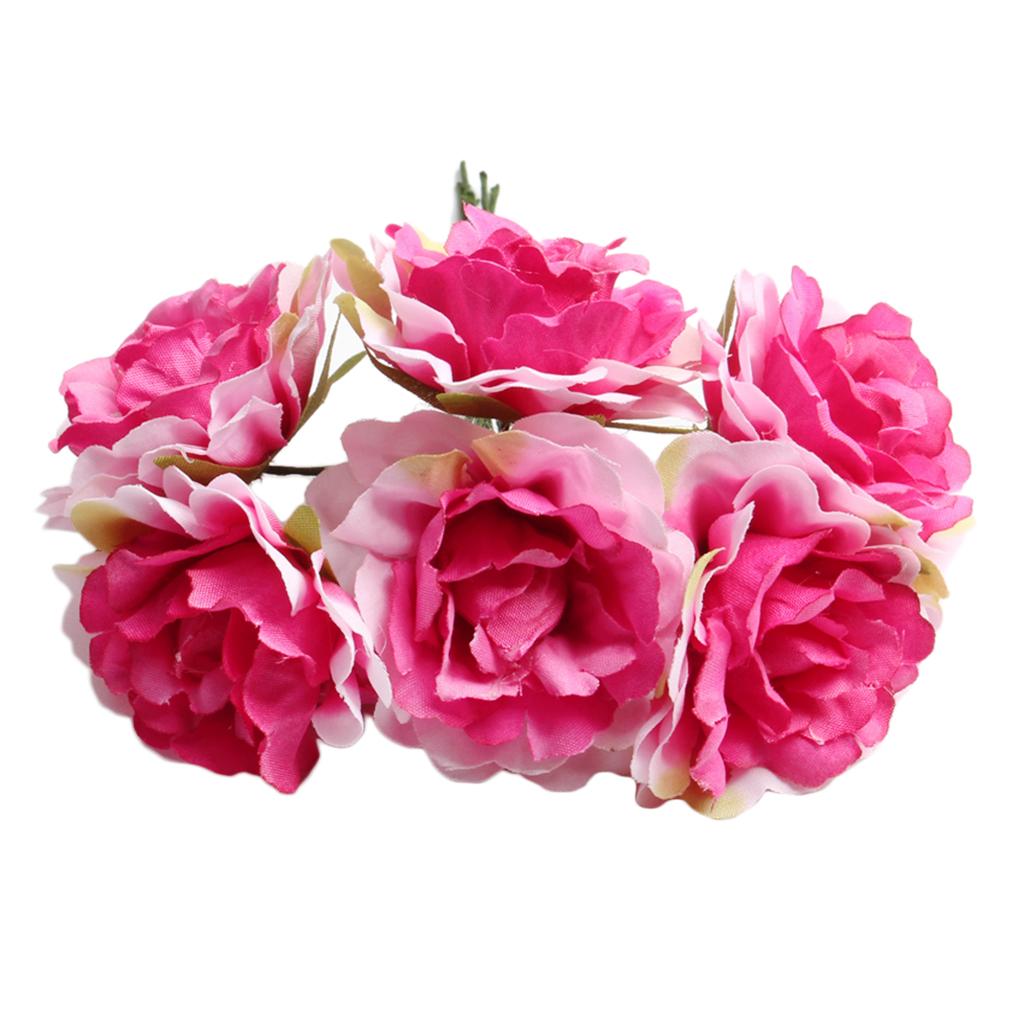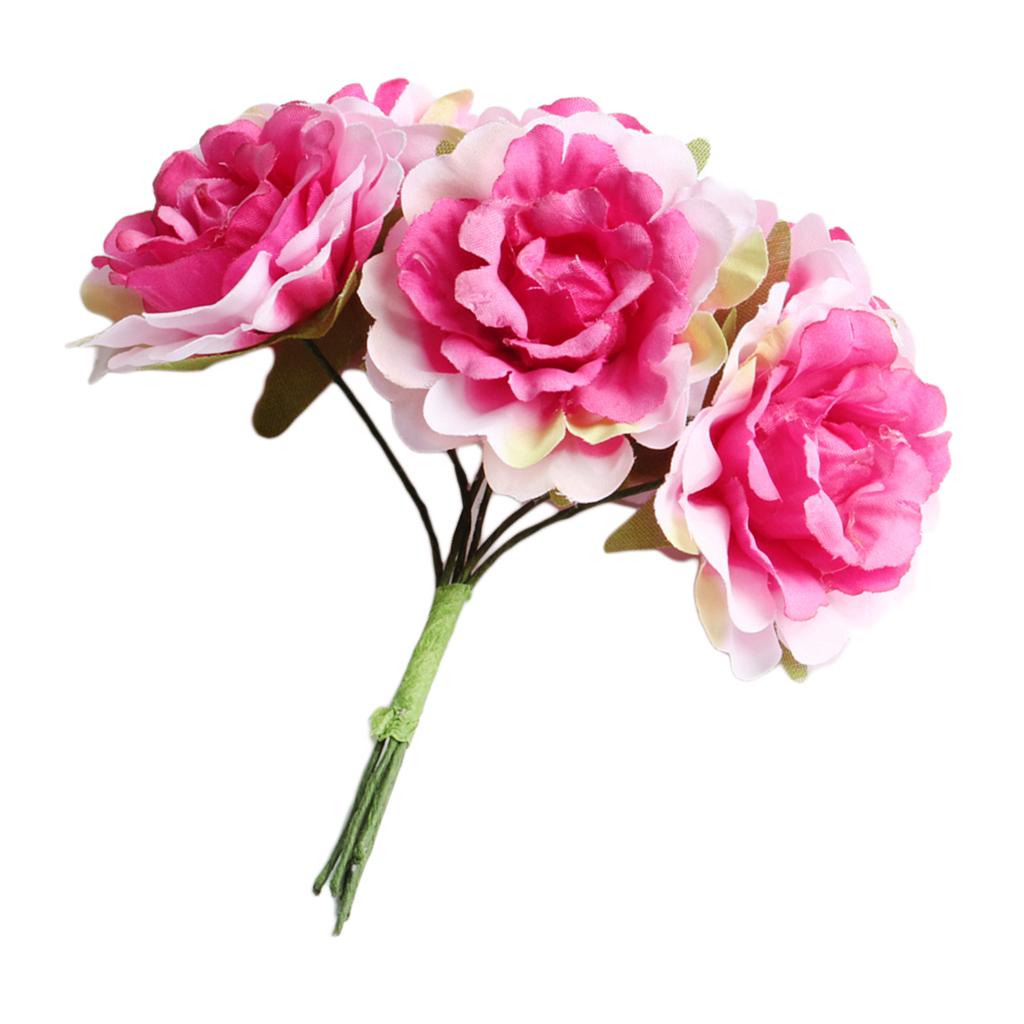 6 Heads Artificial Rose Bouquet Wedding Flowers 4x8cm rose red