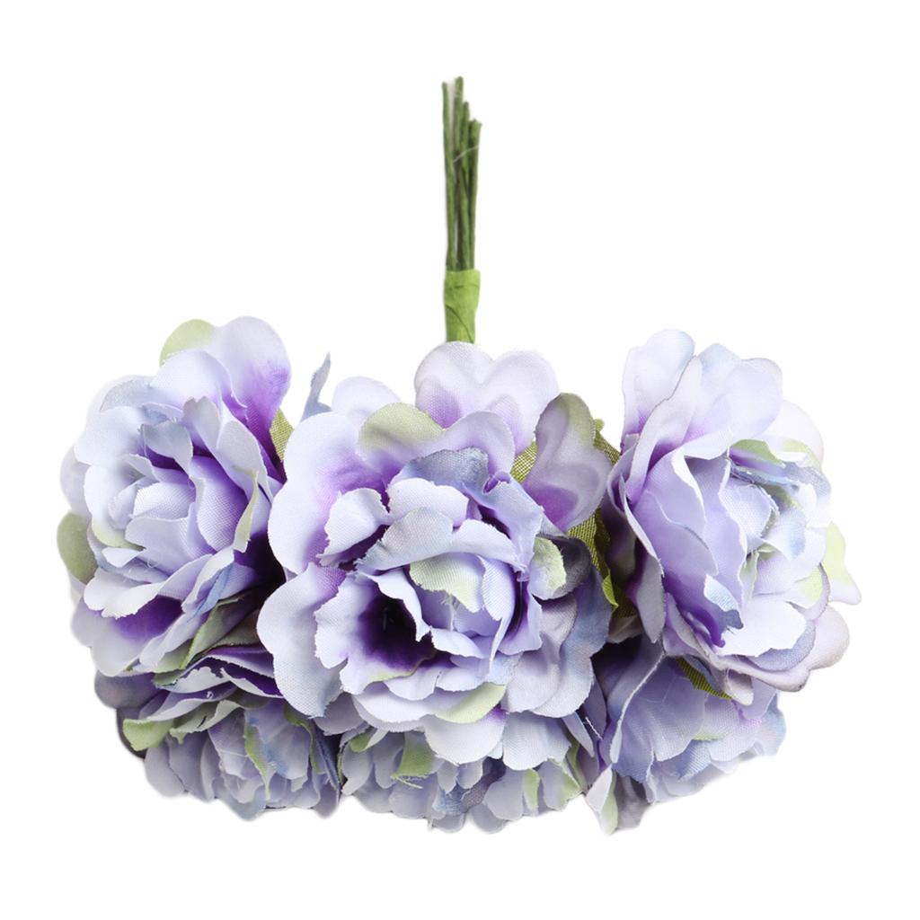 6 Heads Artificial Rose Bouquet Wedding Flowers 4x8cm violet