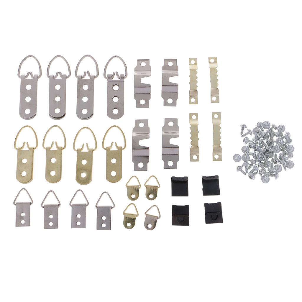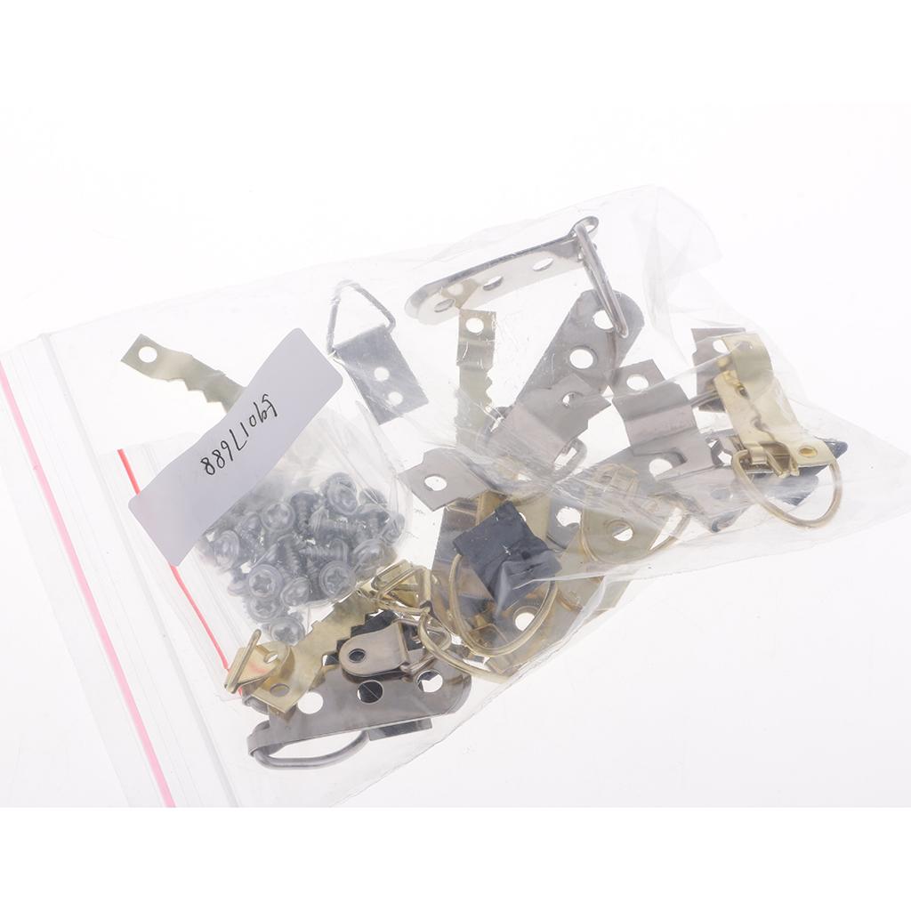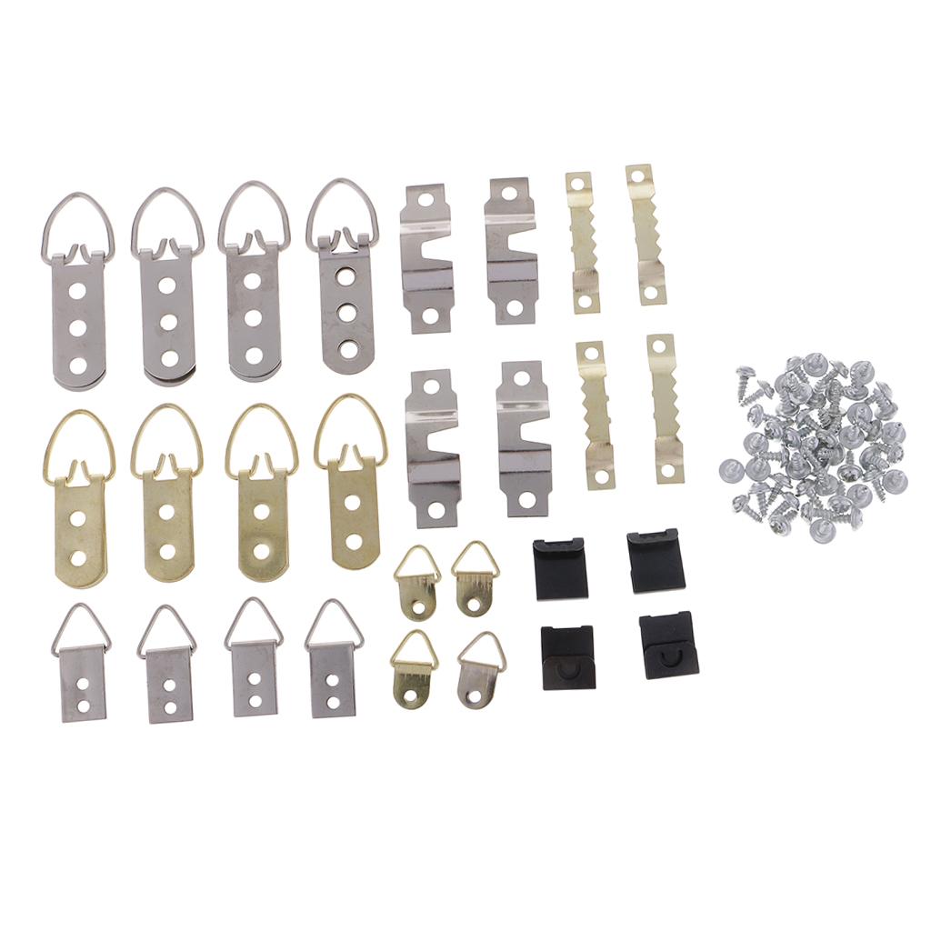 Picture hangers assortment kit: includes 7 models of picture hangers, each model 4 pieces; With 48 pieces supplementary screws, totally 76 pieces per kit.