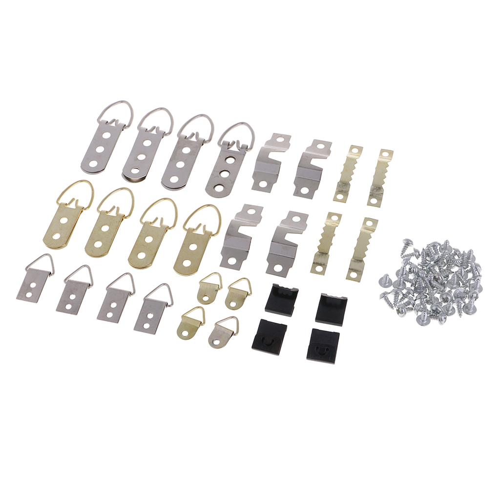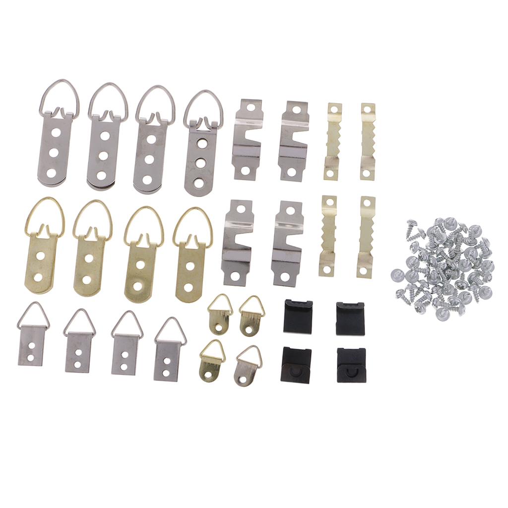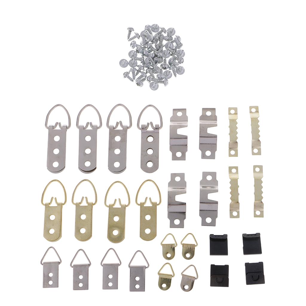 Picture hangers assortment kit: includes 7 models of picture hangers, each model 4 pieces; With 48 pieces supplementary screws, totally 76 pieces per kit.