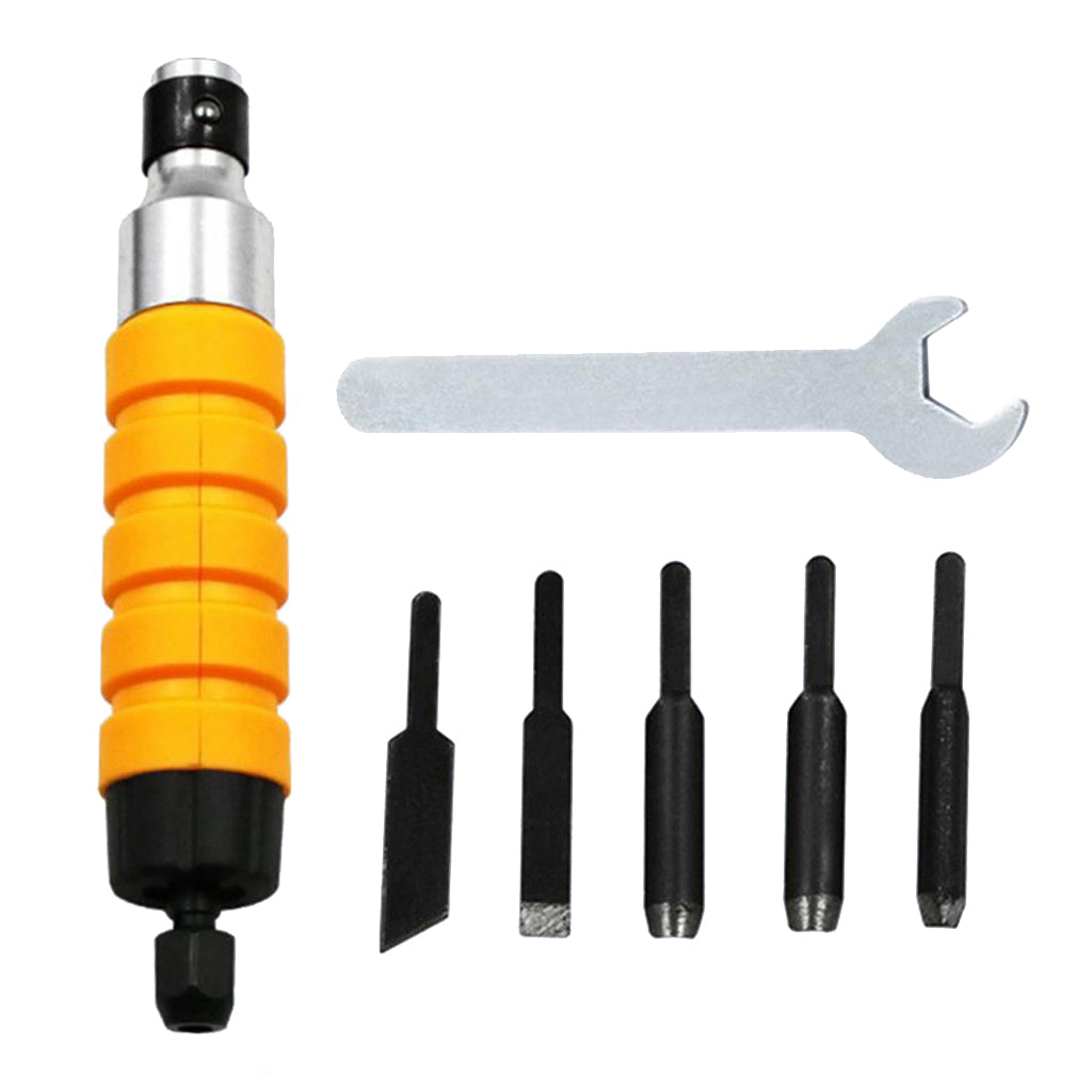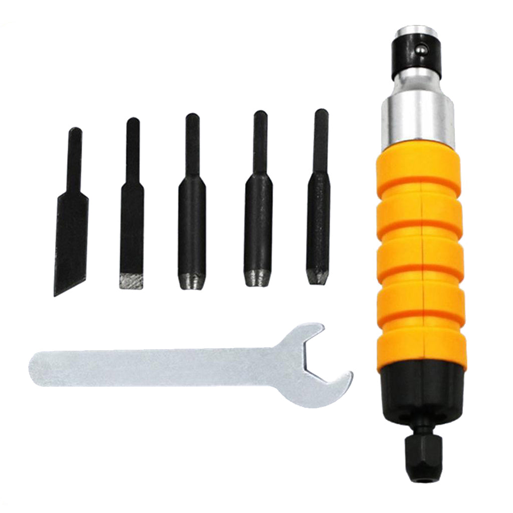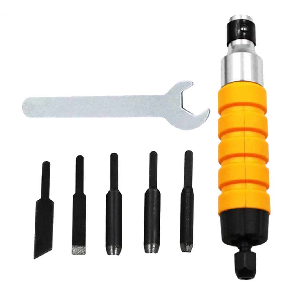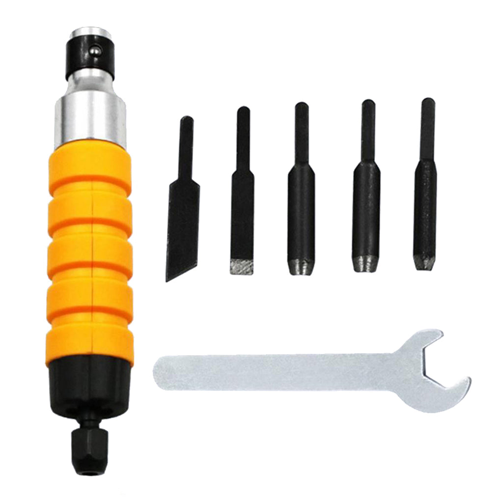 Easy And Convenient Wood Chisel Carving Tool Chuck Attachment For Electric Drill Flexible Shaft - Pack of 7 Pieces with 5 Blades and 1 Spanner