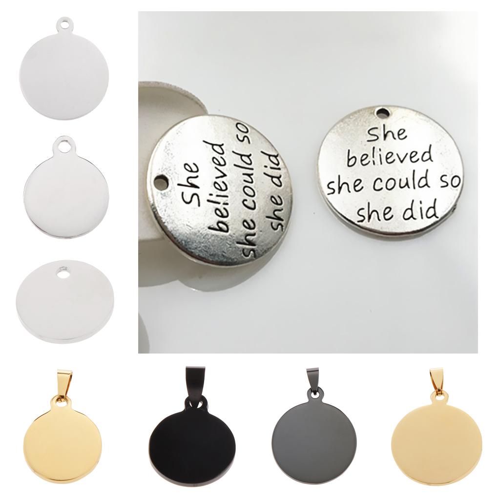 Inner Hole Stainless Steel DIY Engraving Blanks Tag Pendants 20MM-Silver