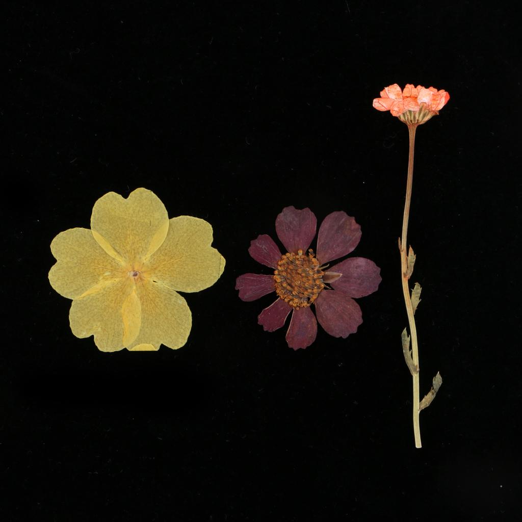 Made of natural flowers and leaves, thus each piece varies slightly in size and shape.