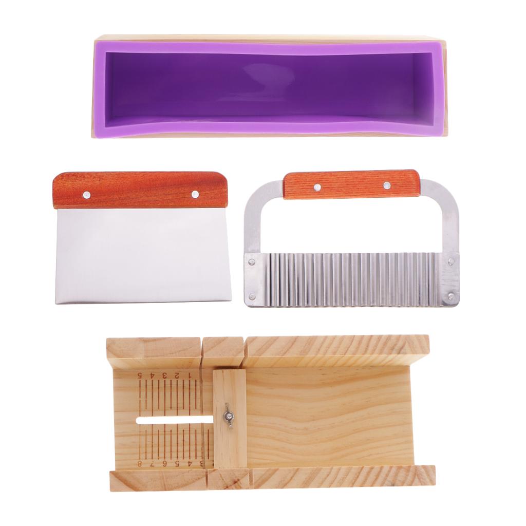 Includes 1 x Soap Cutter Box, 1 x Wooden Silicone Soap Making Mold, 1 x Straight Soap Cutter, 1 x Wavy Soap Cutter
