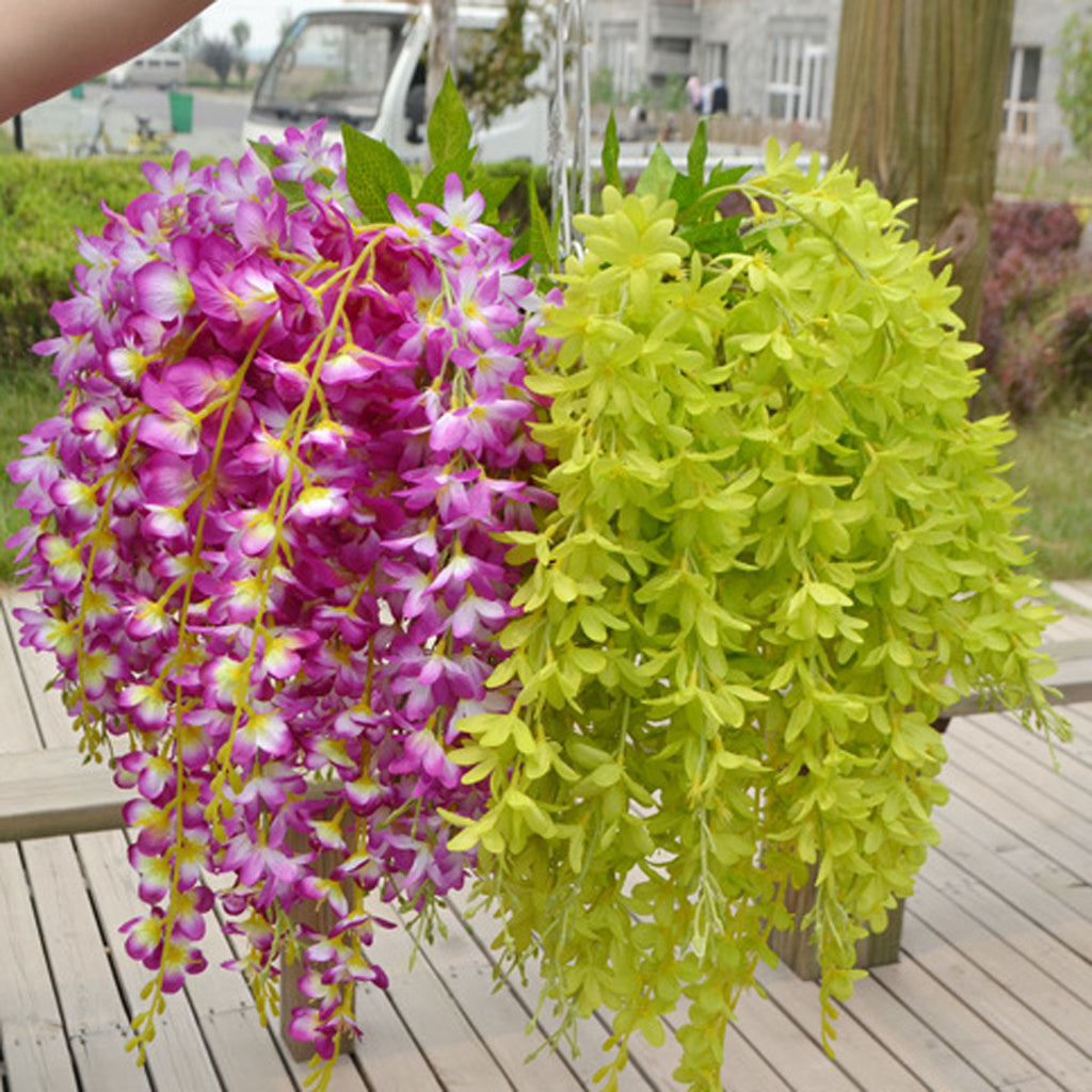 2Pcs Bunch Silk Hanging Plants Artificial Lilac Flower Garland Decor Green