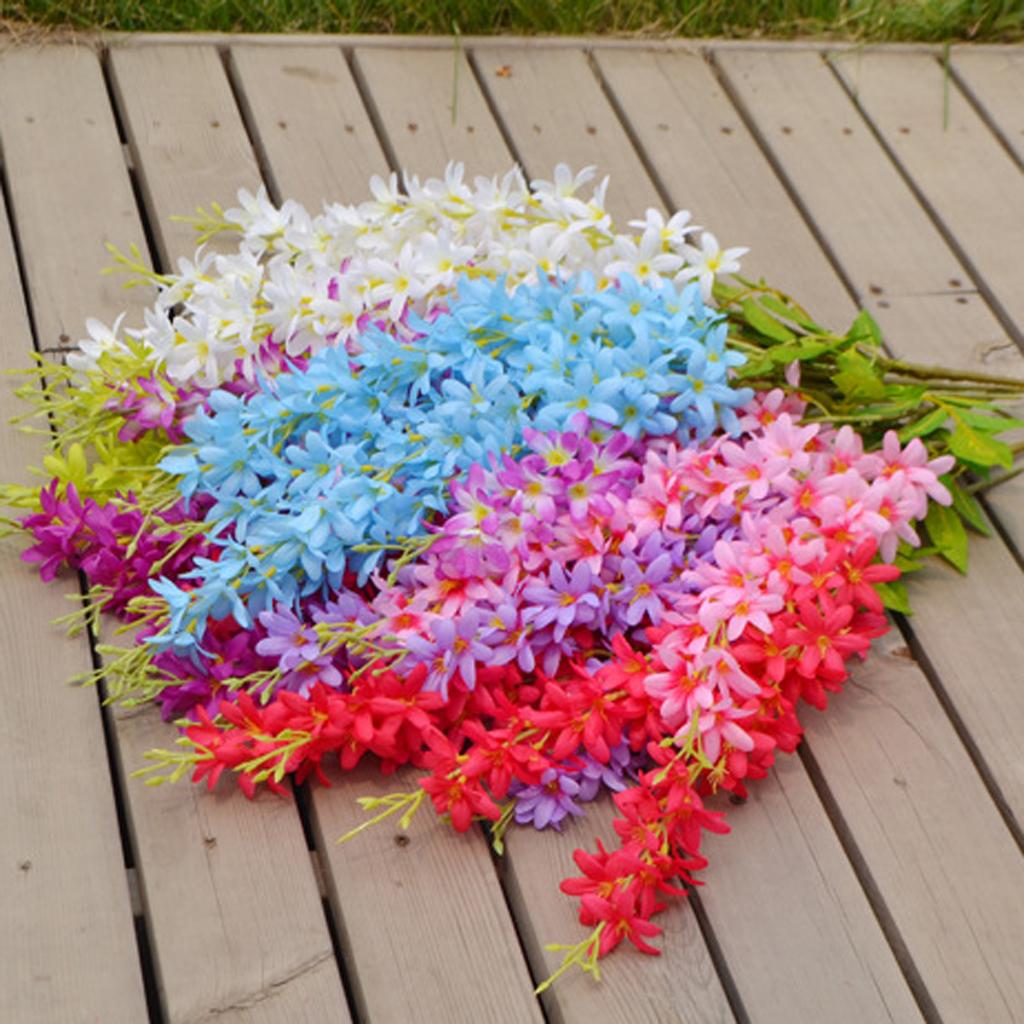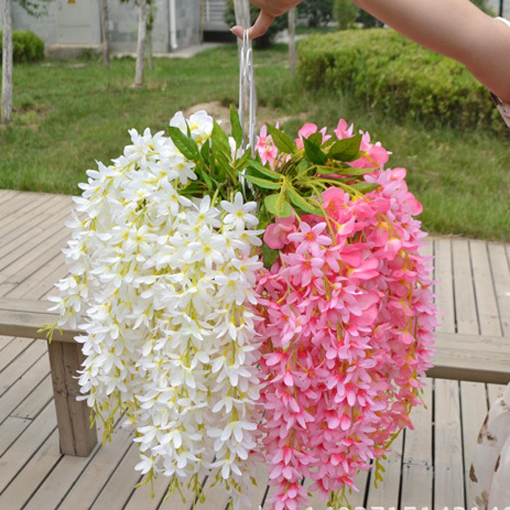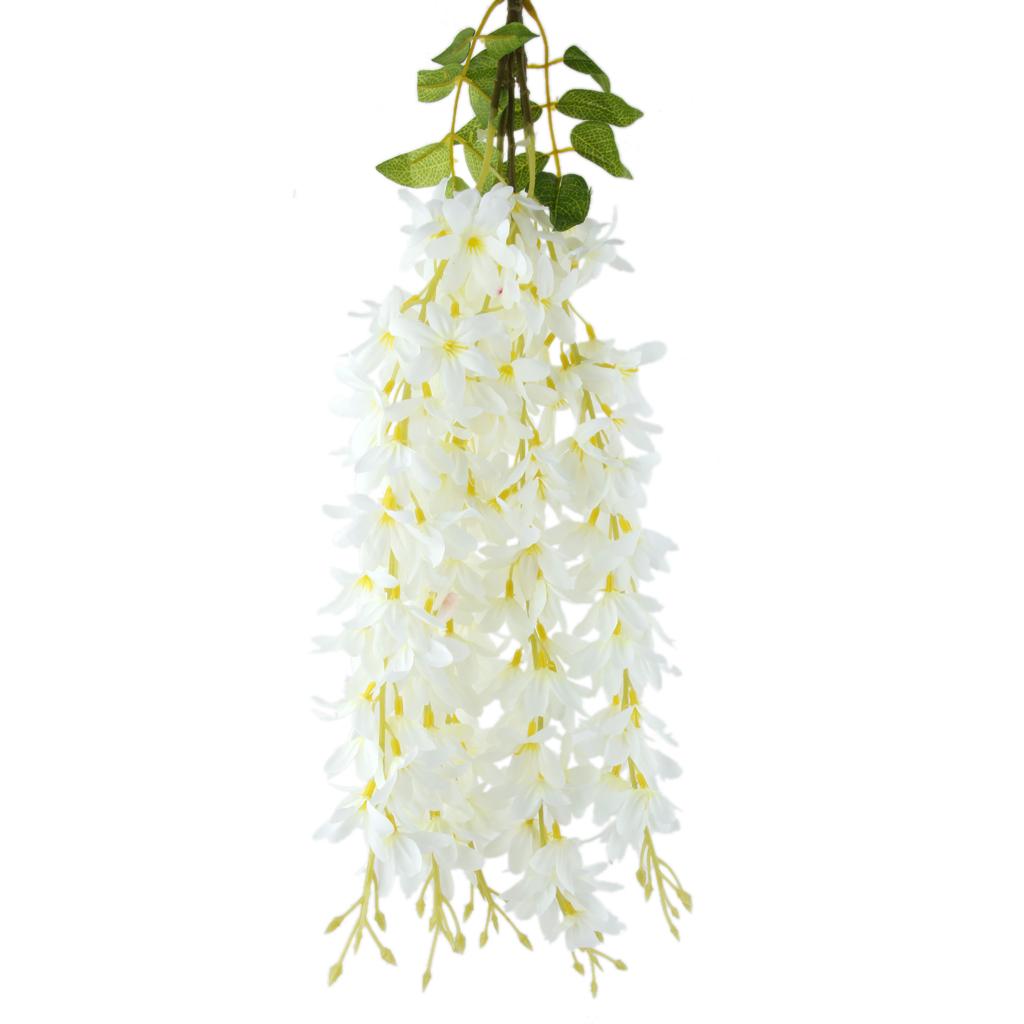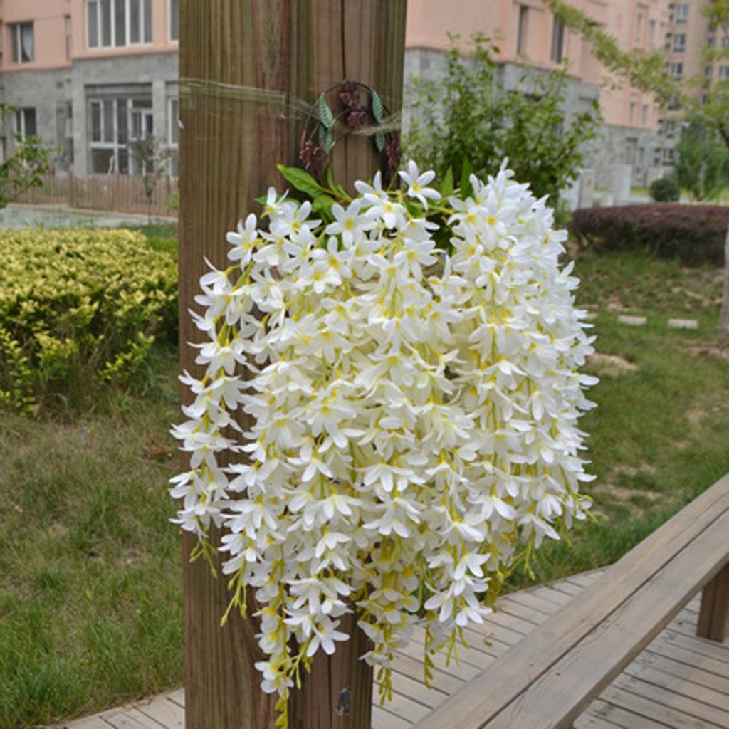 2Pcs Bunch Silk Hanging Plants Artificial Lilac Flower Garland Decor White