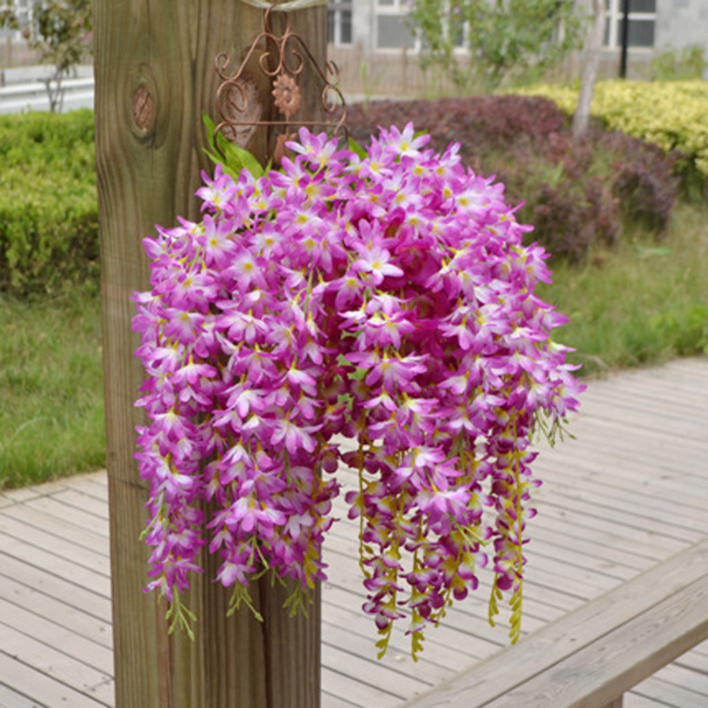 2Pcs Bunch Silk Hanging Plants Artificial Lilac Flower Garland Purple White