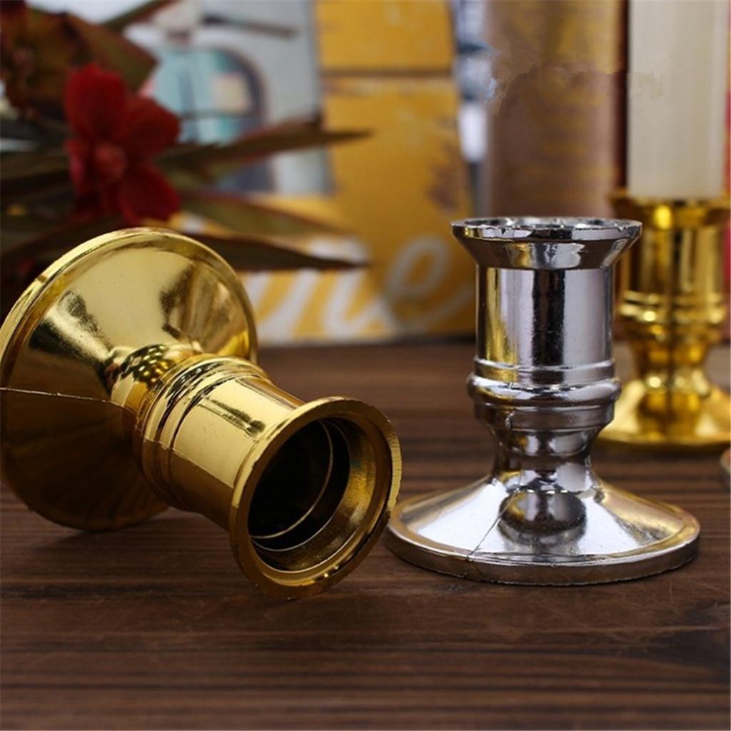 Set of 2 small brass plated finished traditional candle holders. Fits perfectly in any standard candlestick or taper candle.