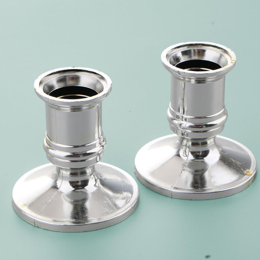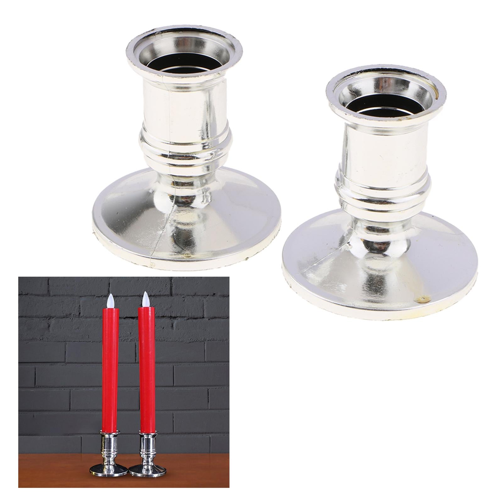 2pcs Plastic Pillar Candle Base Electronic Taper Candle Stand Base Silver