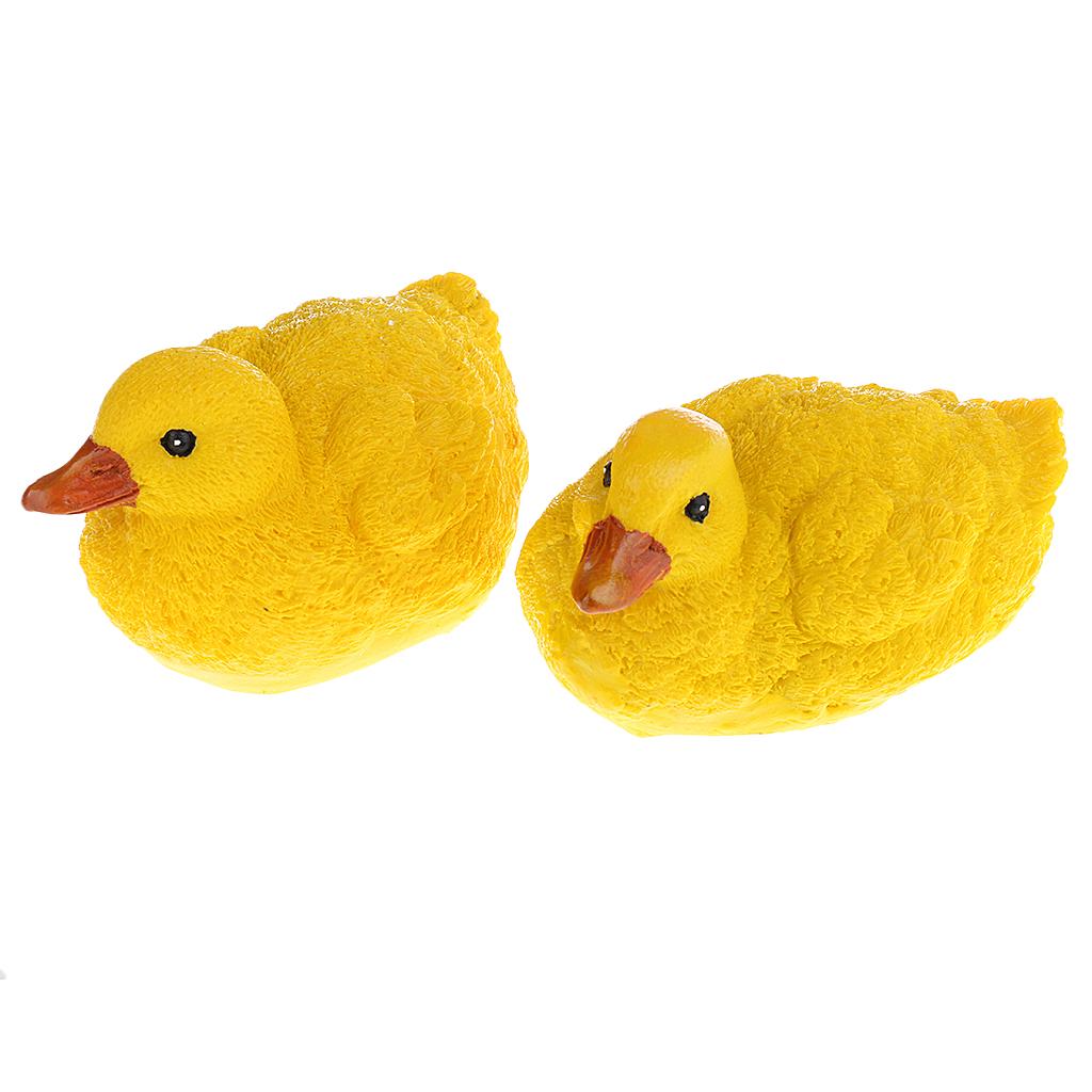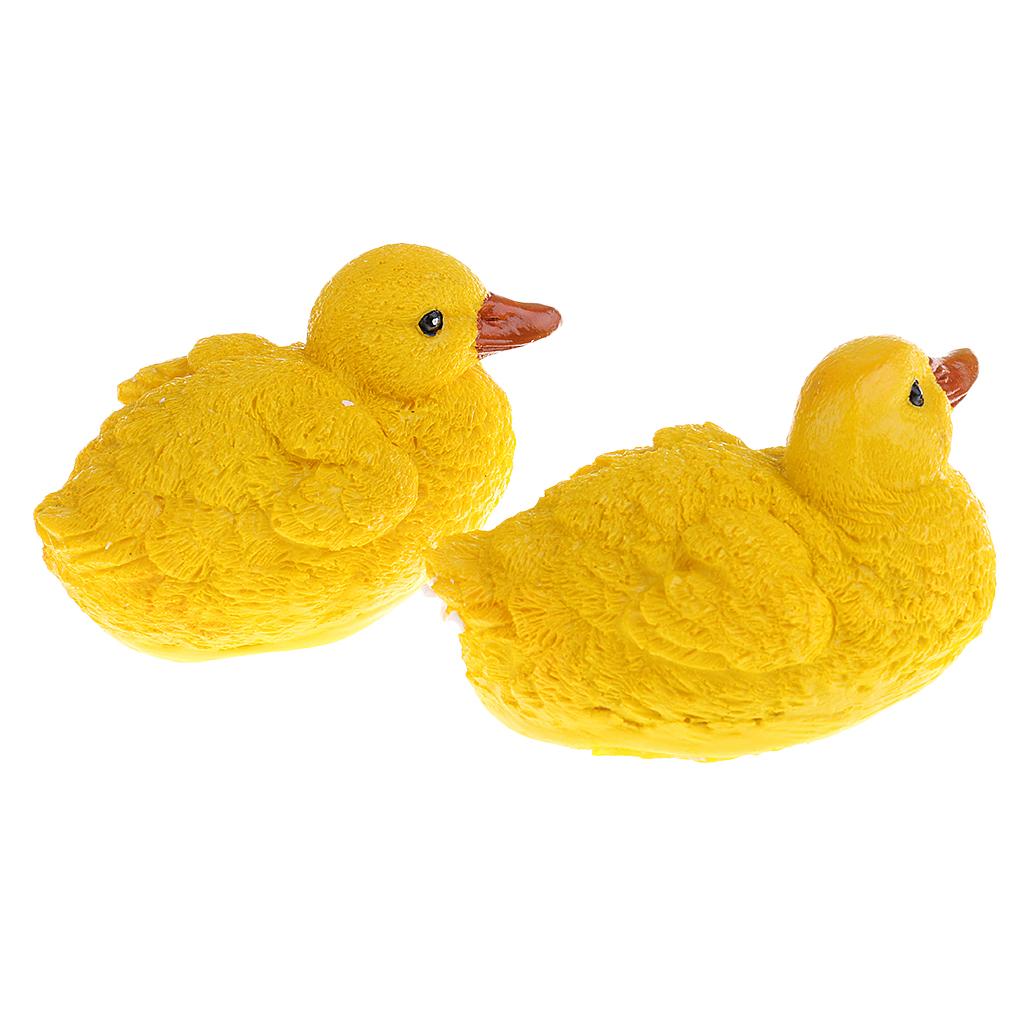 2Pcs Realistic Yellow Ducks Figure for Garden Pond Statues Lawn Decoration
