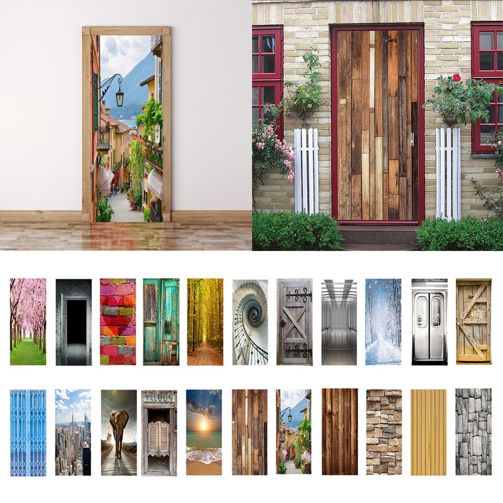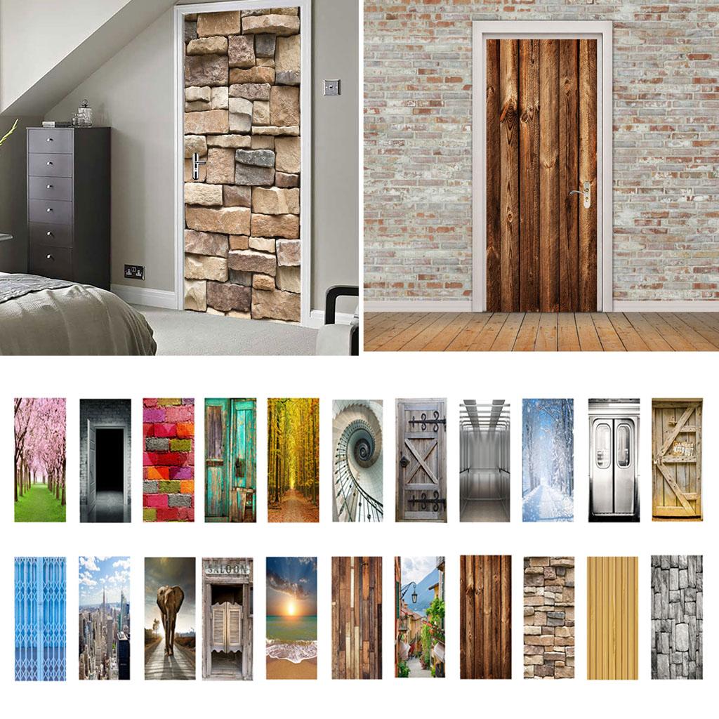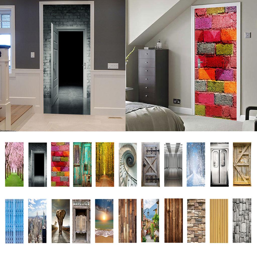 2pcs/set 3D Self-Adhesive Door Wall Fridge Sticker Wrap Mural Wall Decals A