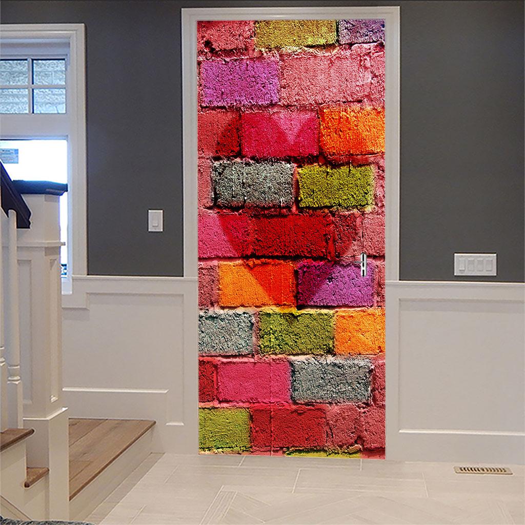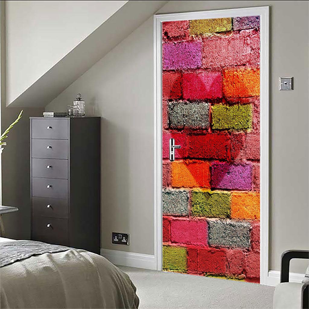 2pcs/set 3D Self-Adhesive Door Wall Fridge Sticker Wrap Mural Wall Decals C