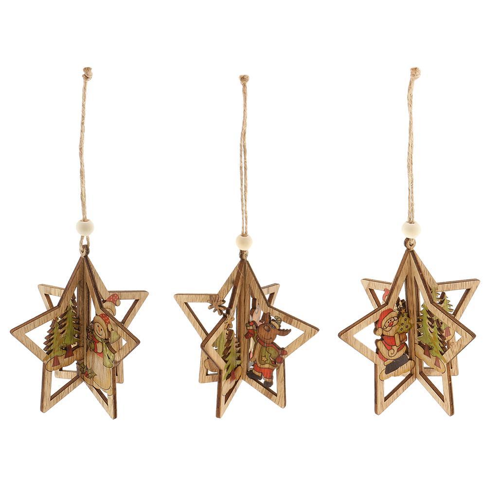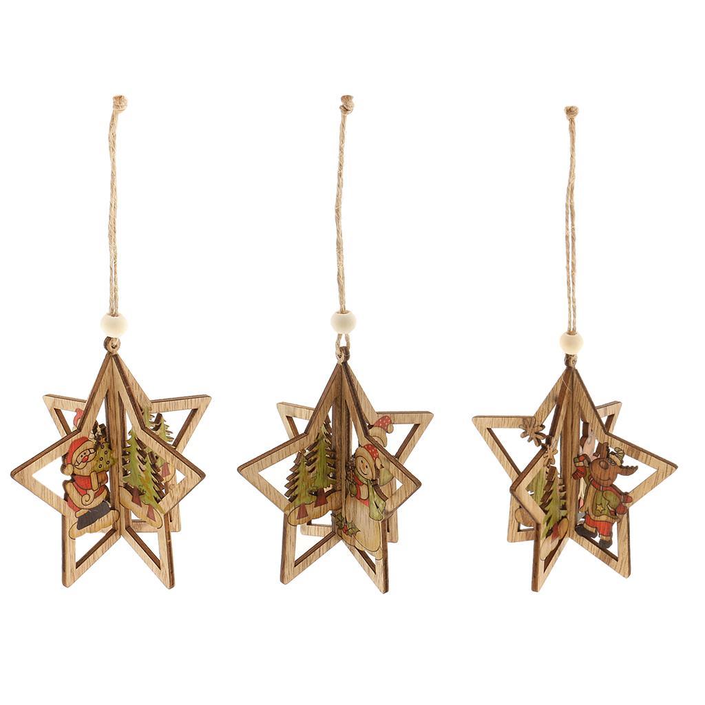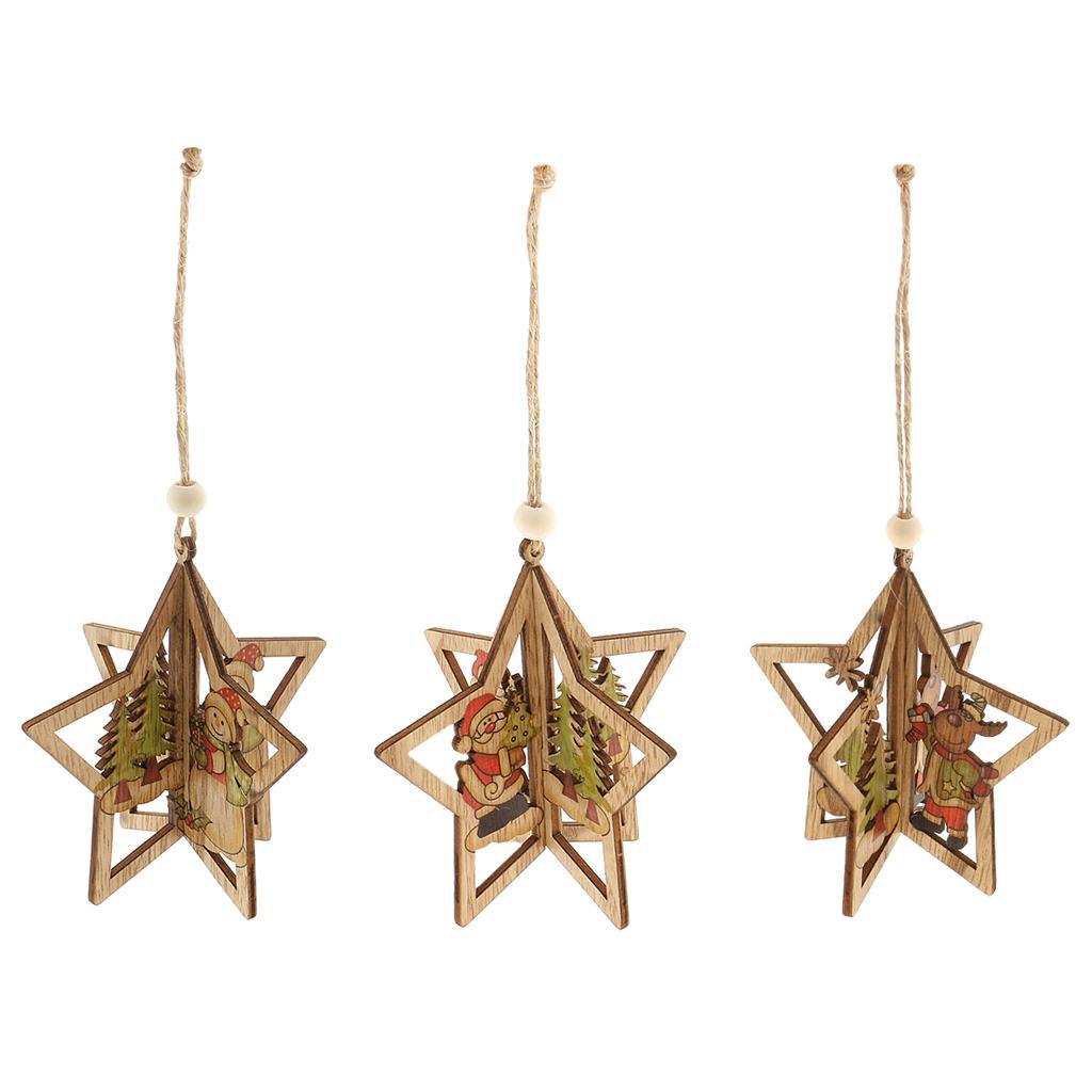 3 Pieces/Set 3D Wood Christmas Tree Decoration Xmas Hanging Snowman Deer Santa Claus Ornament Christmas Party Decor Crafts