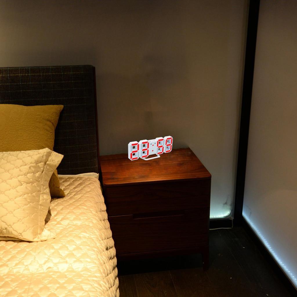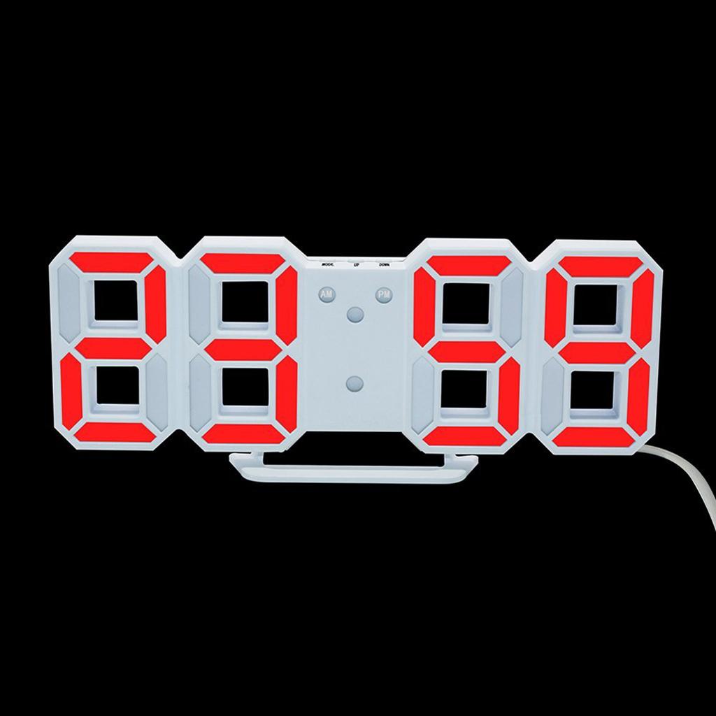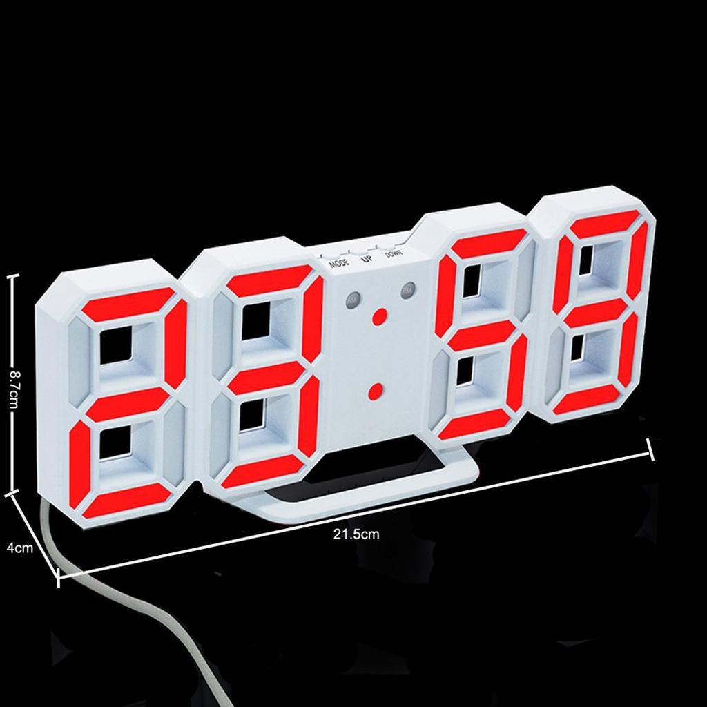 3D Digital LED Table Wall Clock 24/12-Hour Display USB Alarm Snooze -Orange
