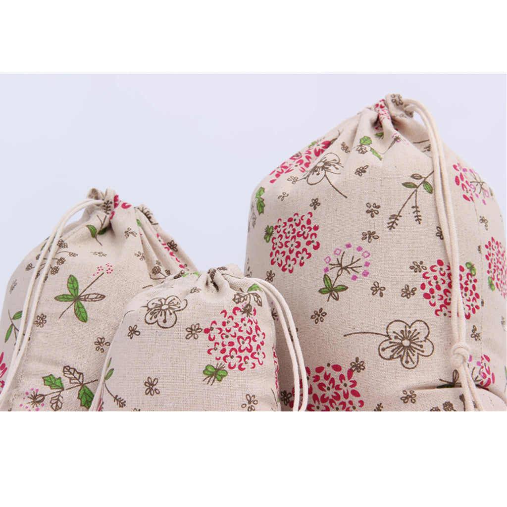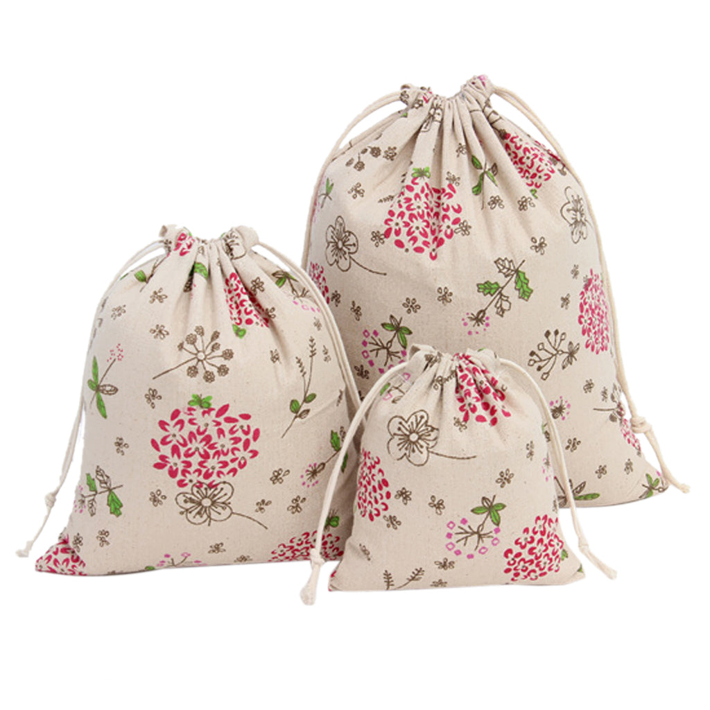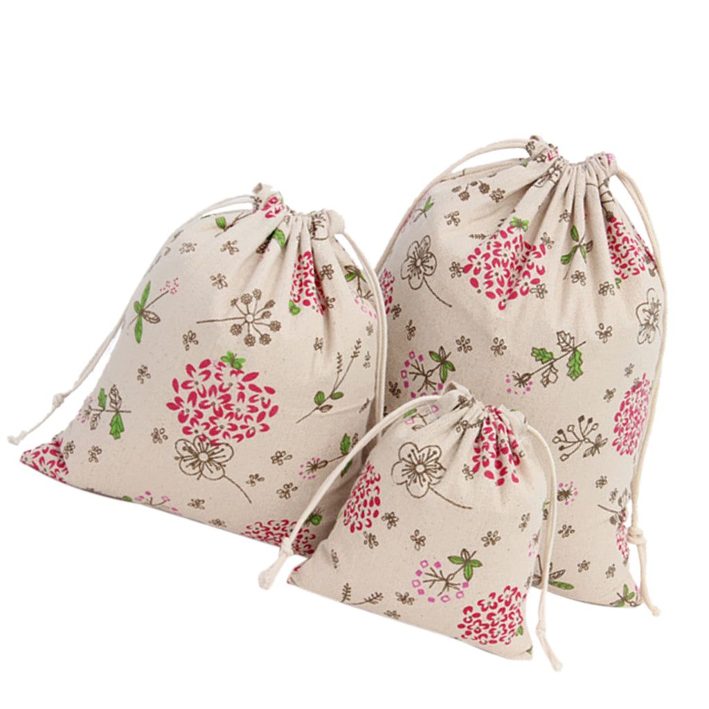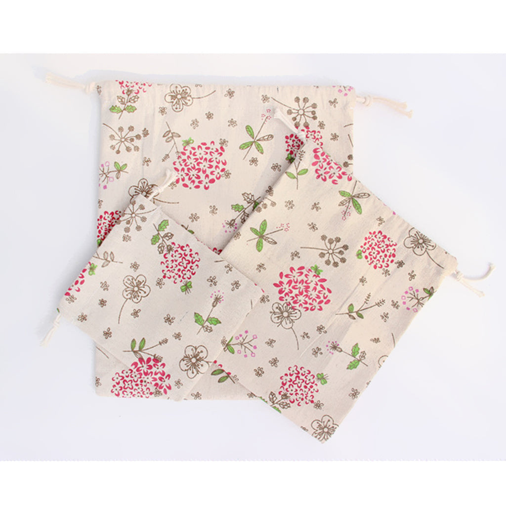 3Pcs Sets Plants Printed Drawstring Sack Dress Underwear Shoes Laundry Storage Bags Tote