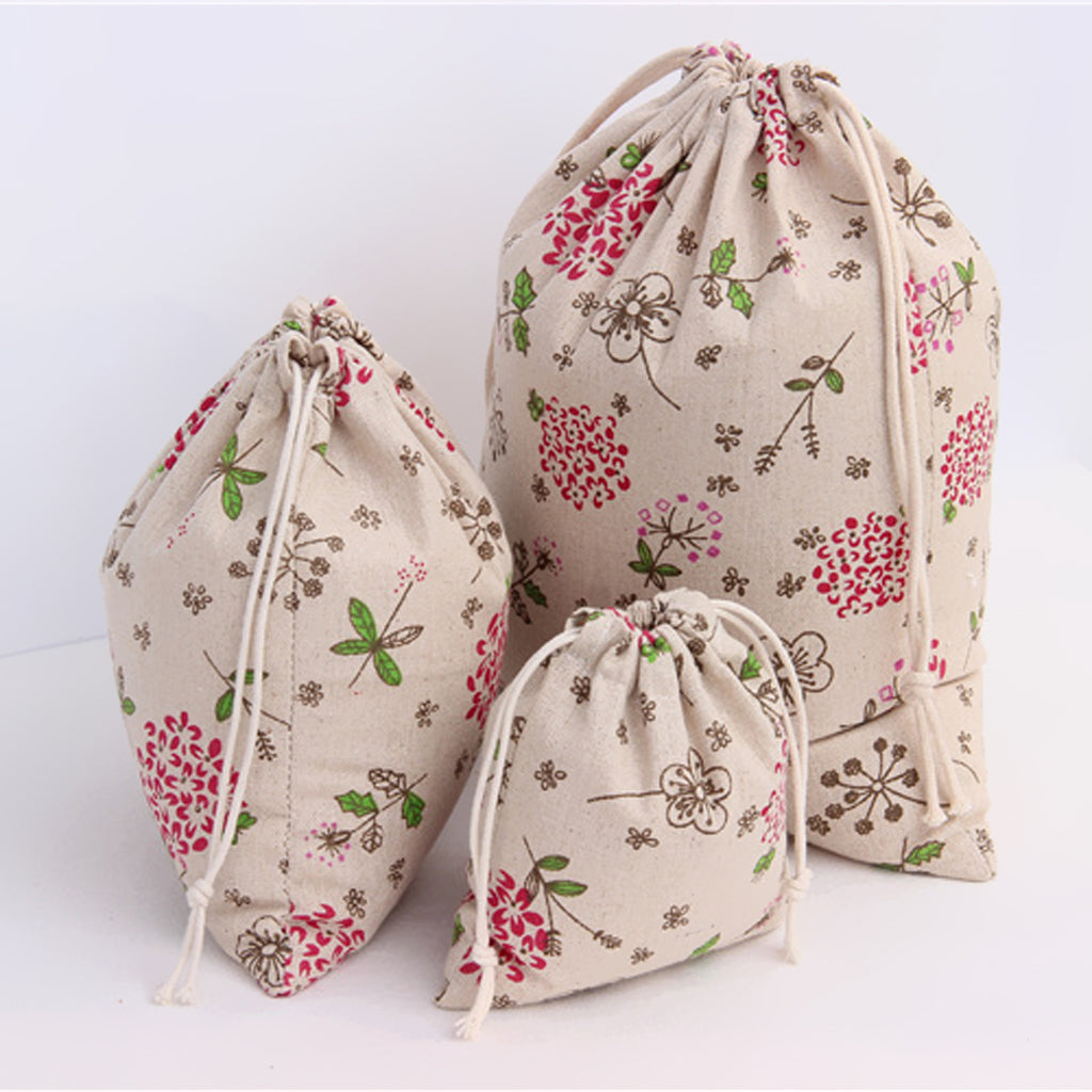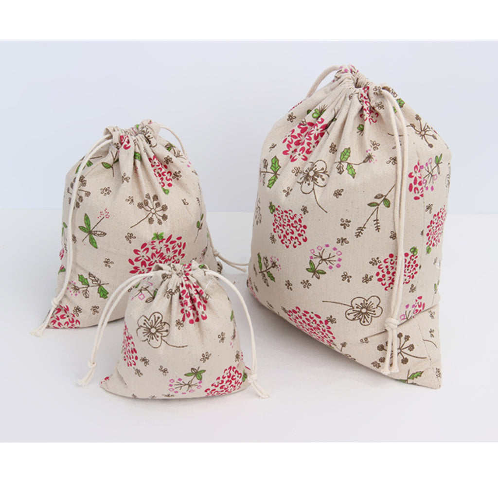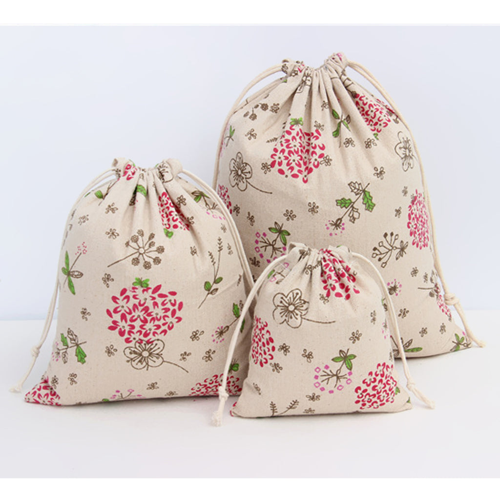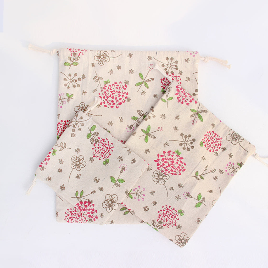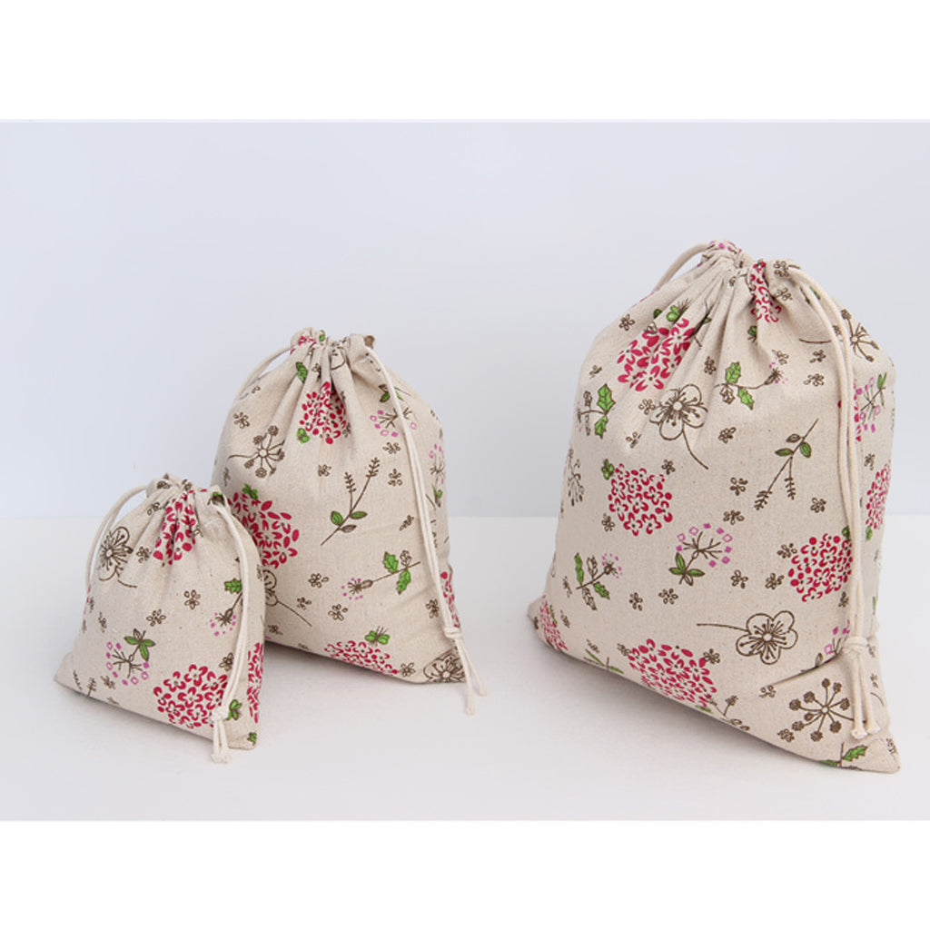 3Pcs Sets Plants Printed Drawstring Sack Dress Underwear Shoes Laundry Storage Bags Tote