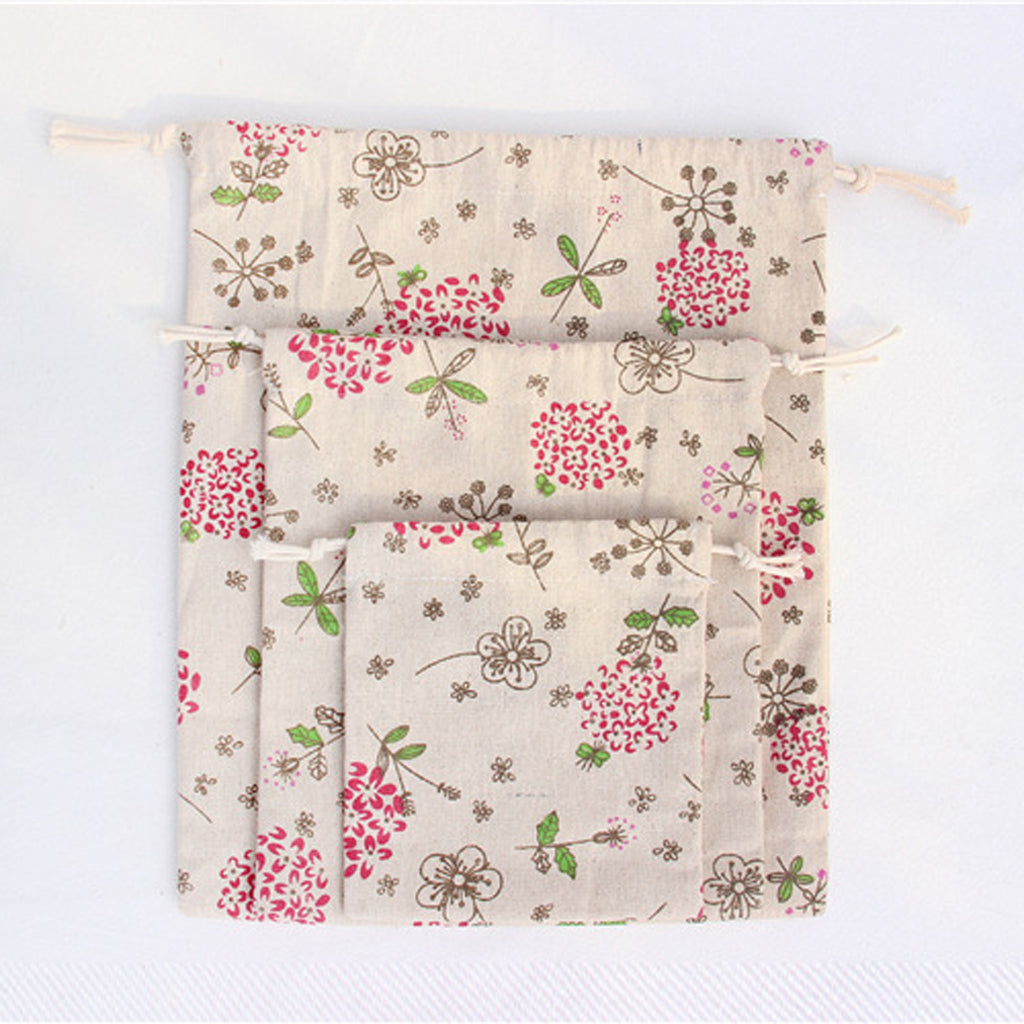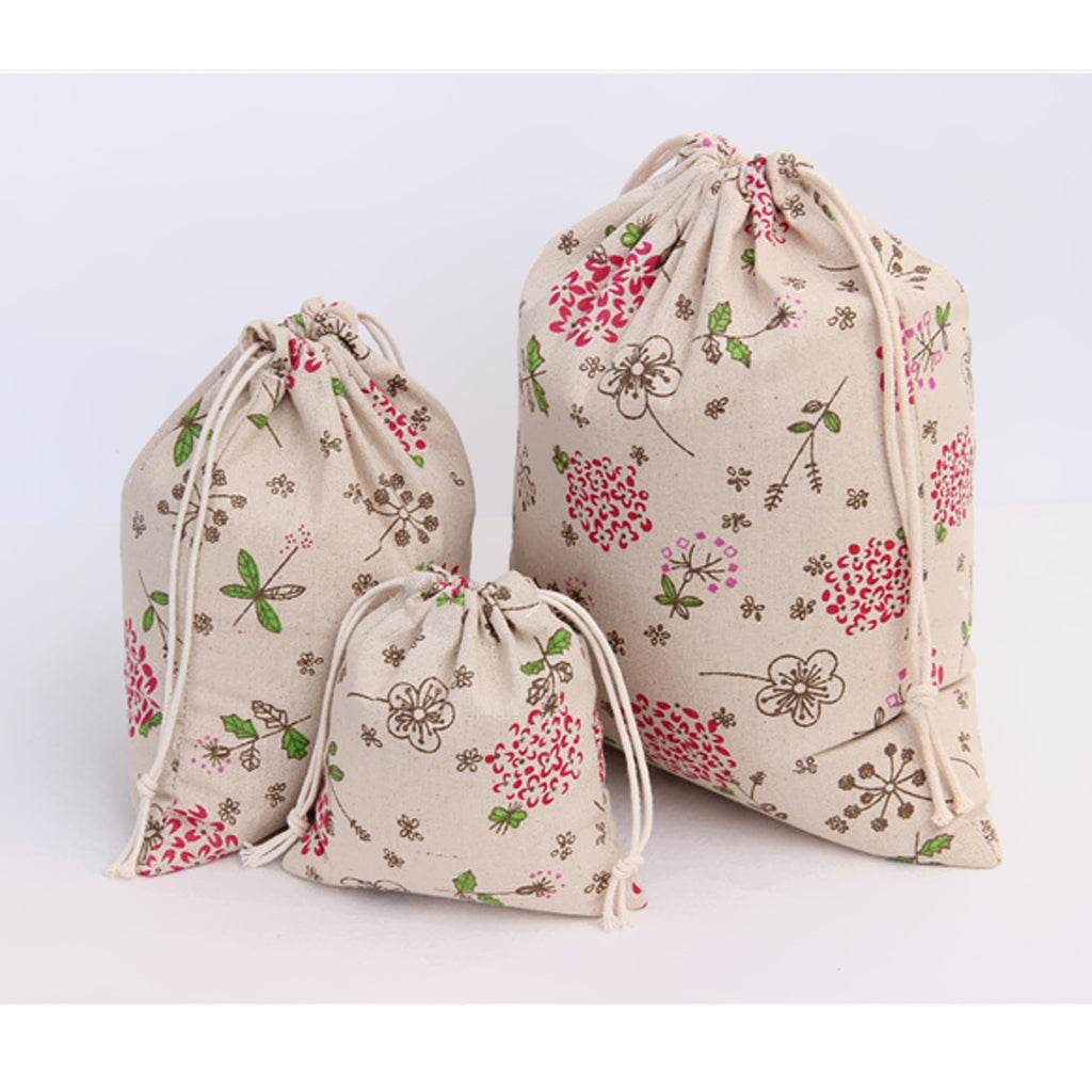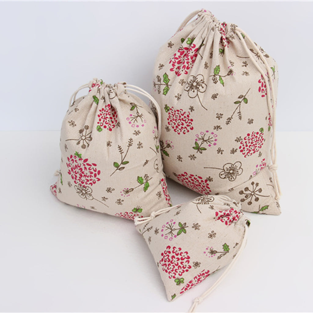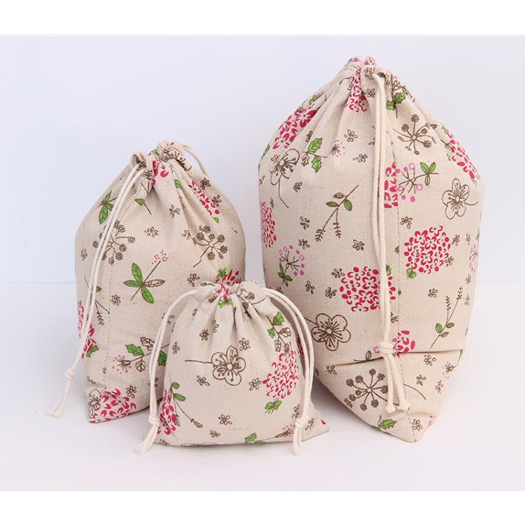 3Pcs Sets Plants Printed Drawstring Sack Dress Underwear Shoes Laundry Storage Bags Tote