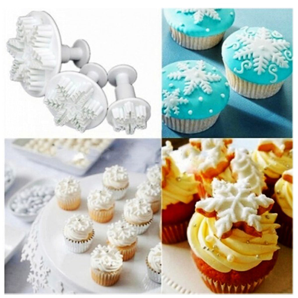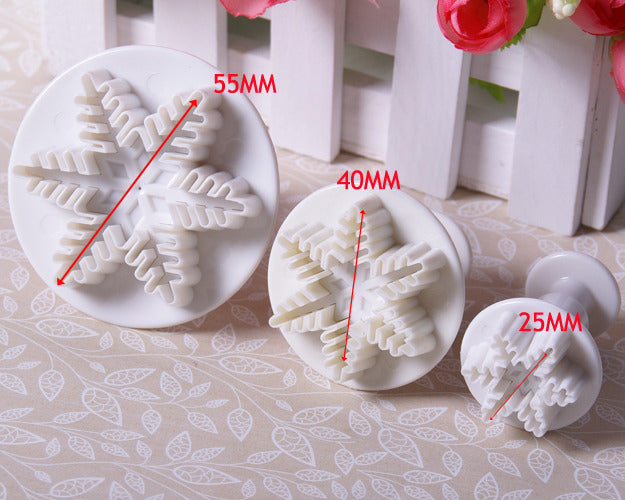 3pcs Snowflake Snow Flake Fondant Cake Cutter Plunger