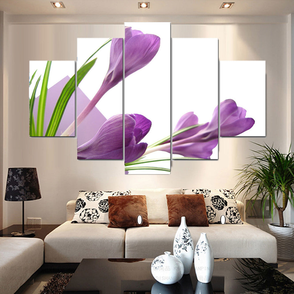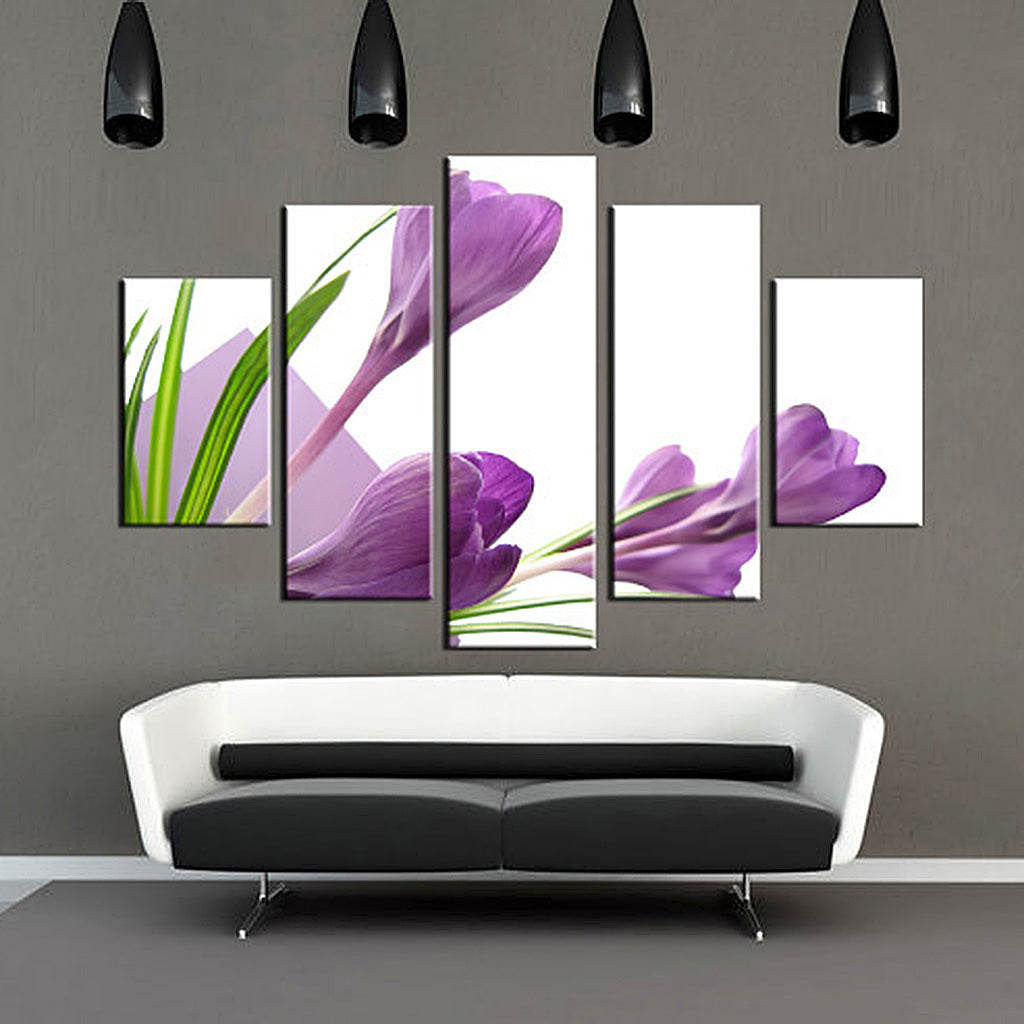 5 Panels PURPLE DAFFODIL Canvas Print Wall Art Painting Picture Hall Decor