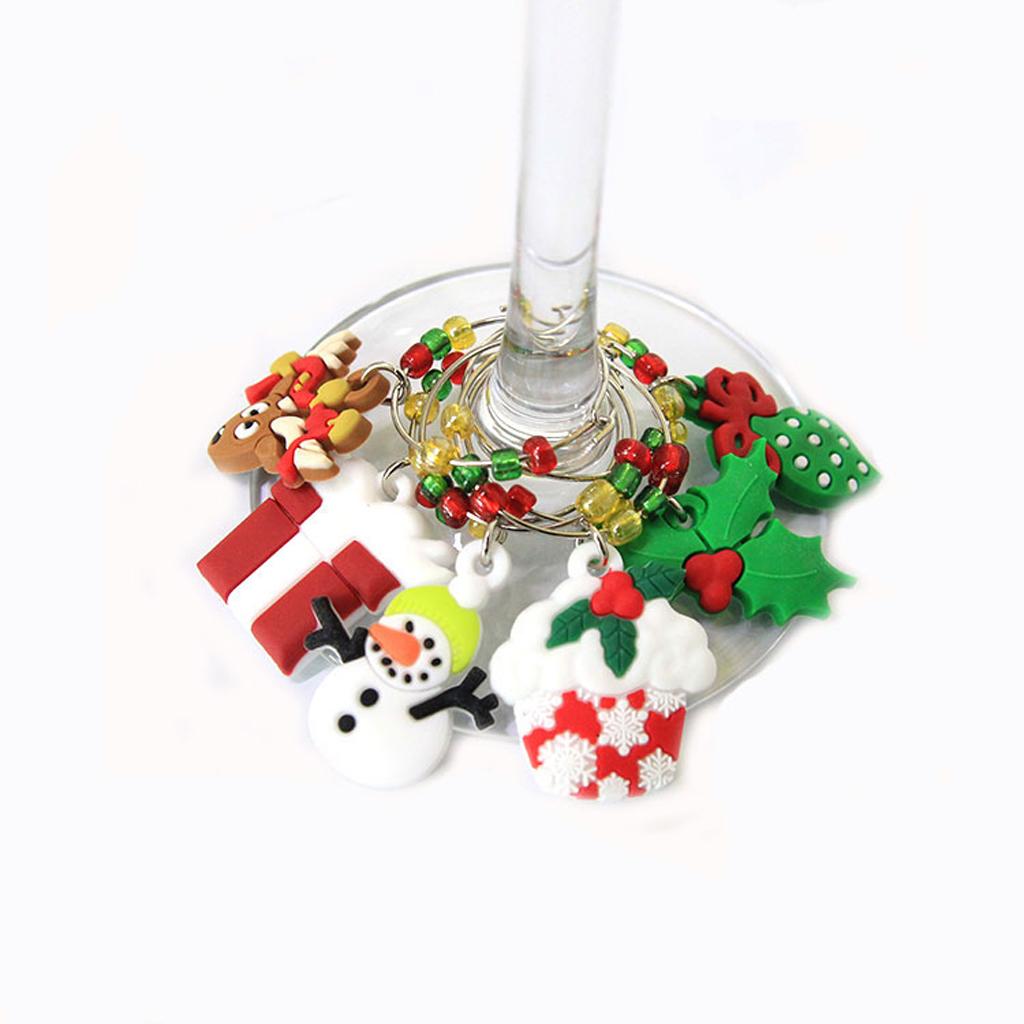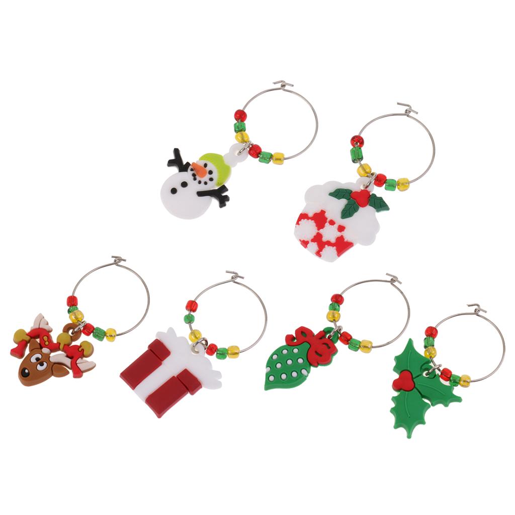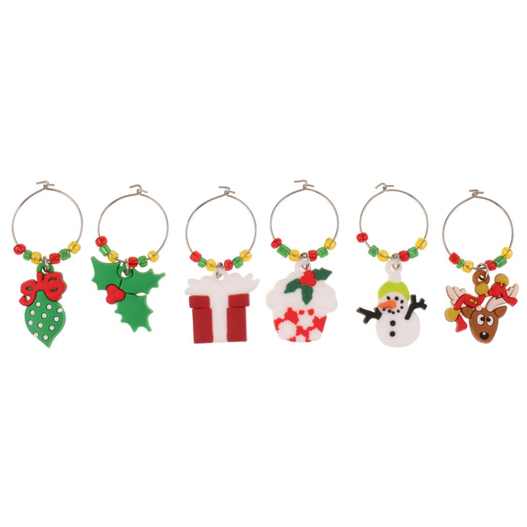 6 mixed styles Christmas theme wing glass charms drink cup markers sets