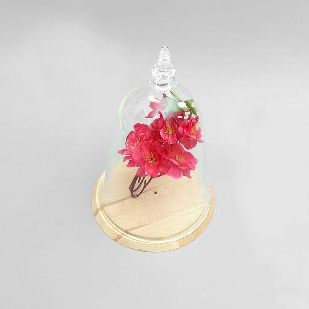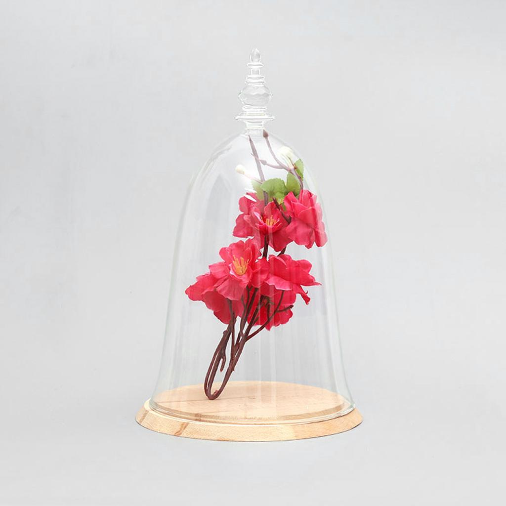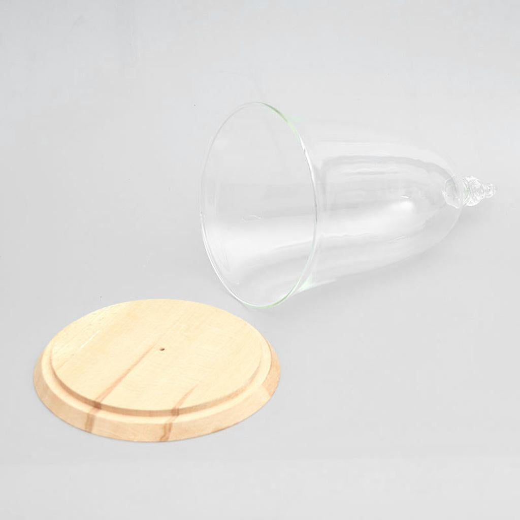 Bell-shaped Glass Cover Vase Landscape Bottle Terrarium Container Beige Tray