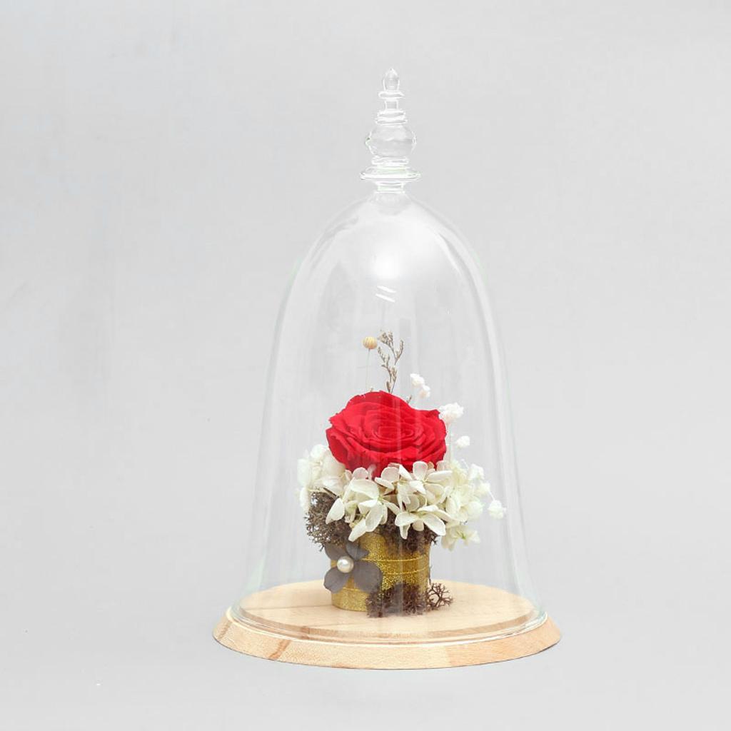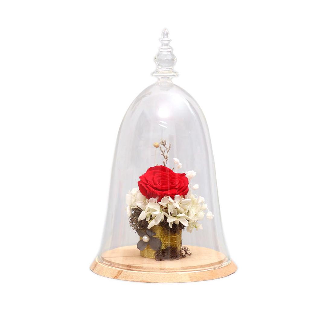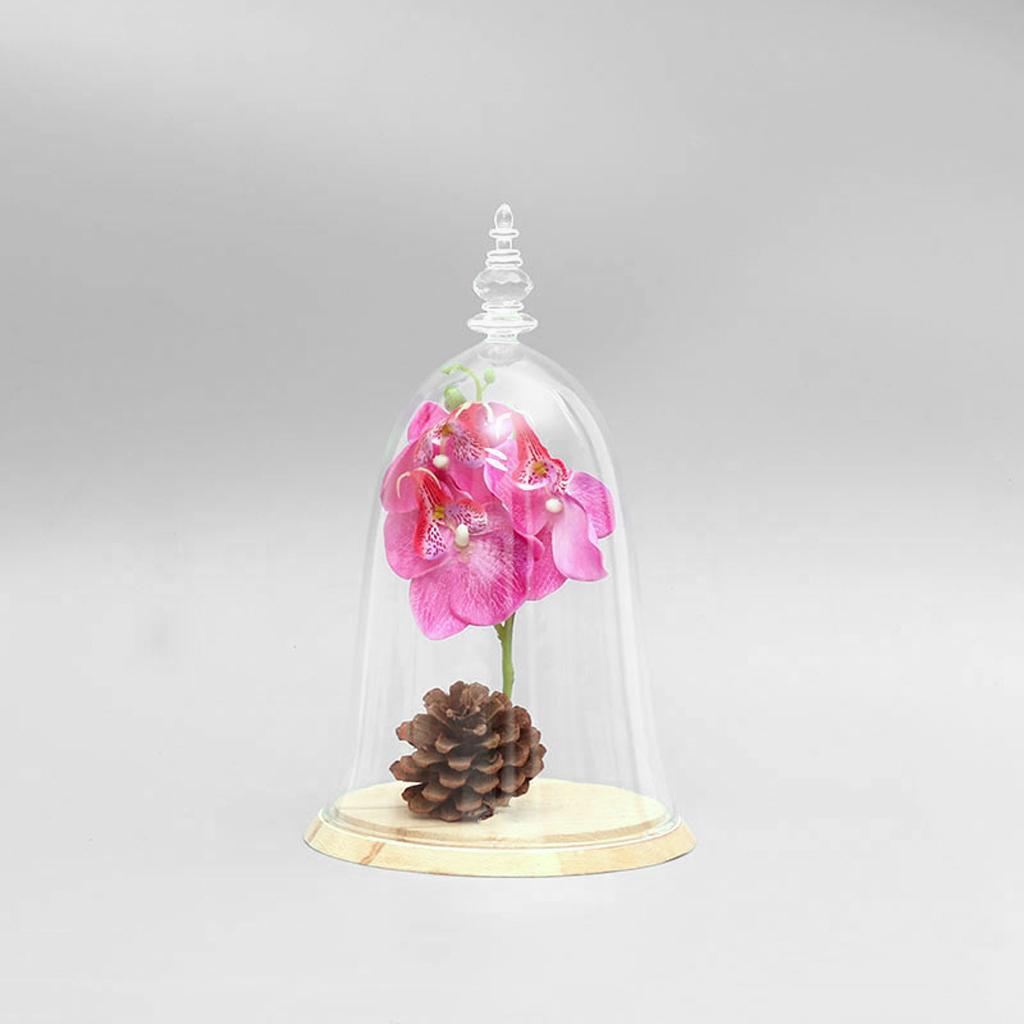 Bell-shaped Glass Cover Vase Landscape Bottle Terrarium Container Beige Tray