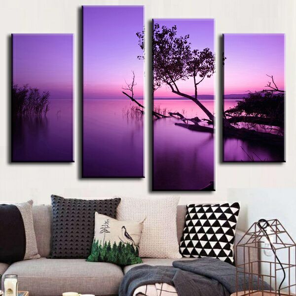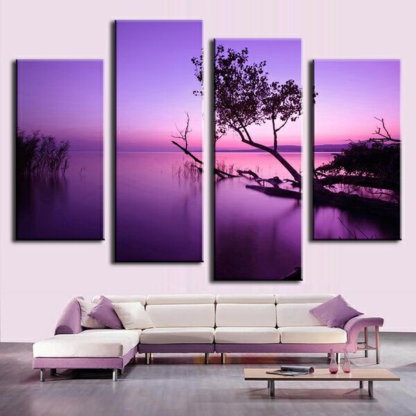 Canvas Modern Purple Lake Home Decor Wall Art Painting Picture Print