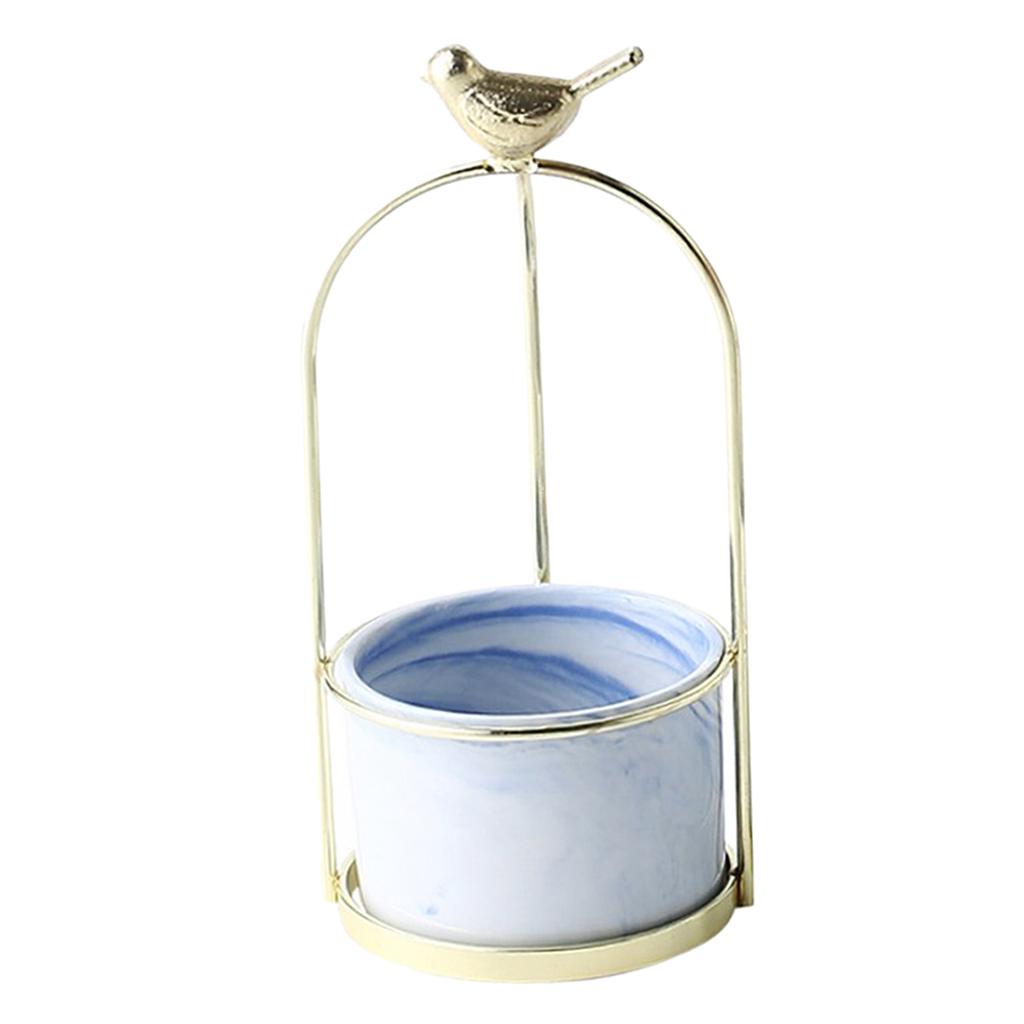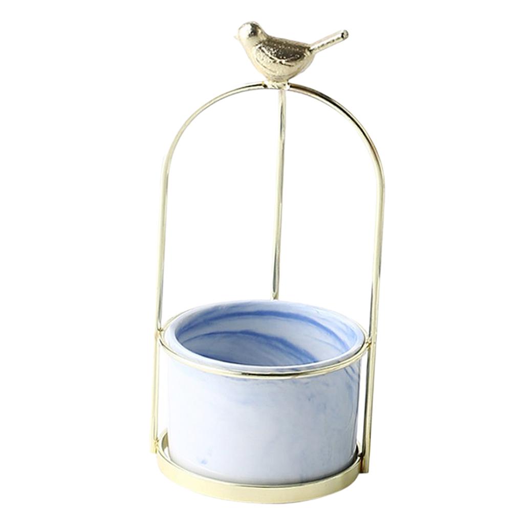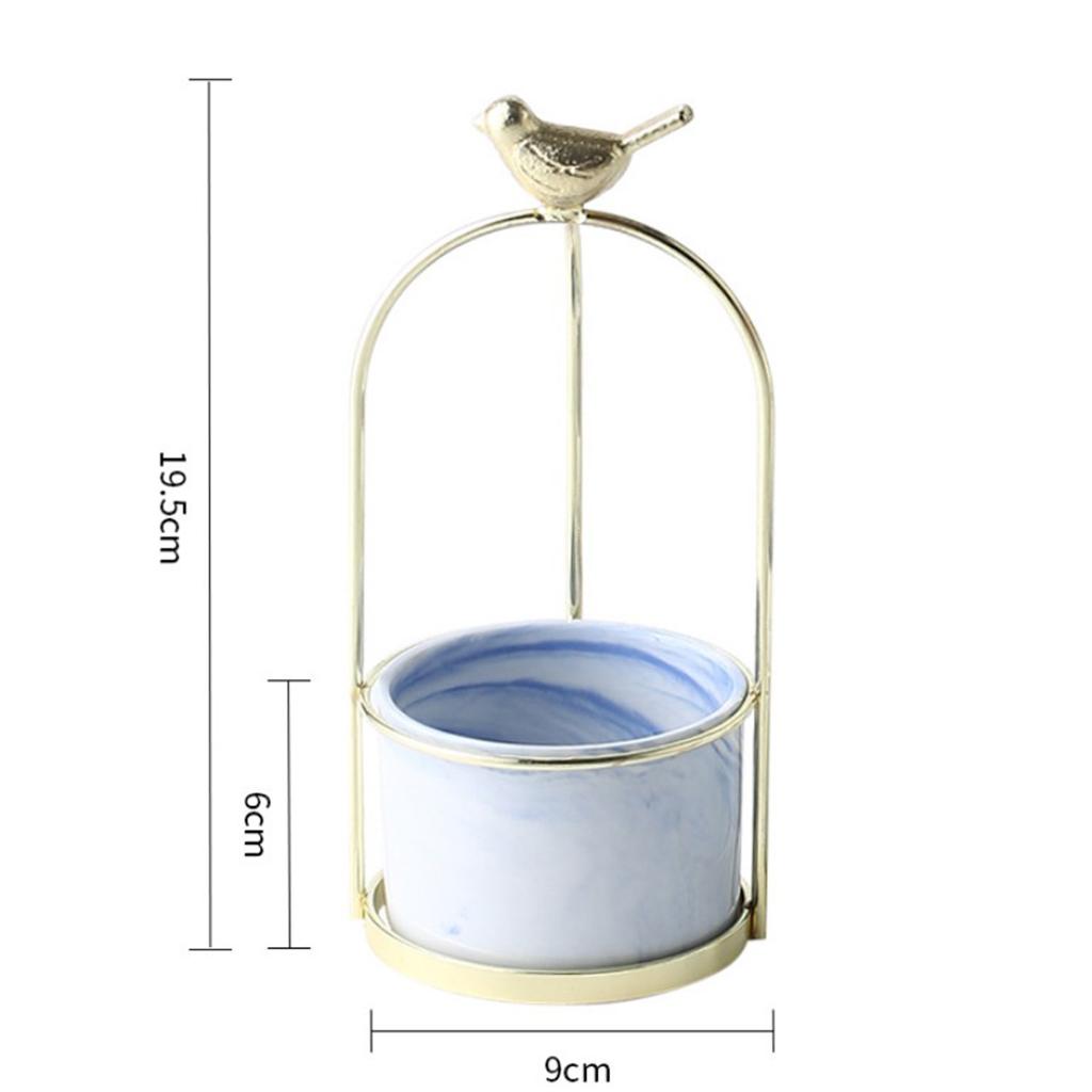 Unique and Exquisite: Ceramic flower pot with Golden Iron Stand decorated with a Bird at the top, looks distinguished from others. Ceramic pots are breathable and good for your plants to grow.
