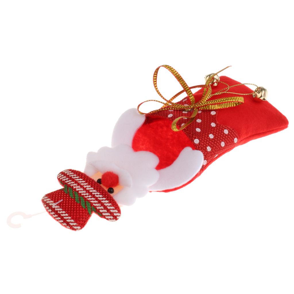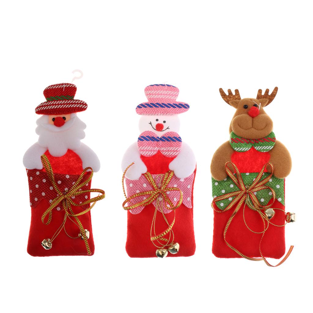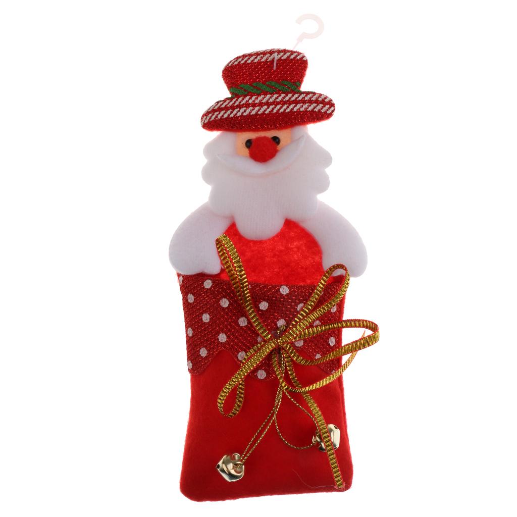 Christmas gift candy bag container hanging ornaments for Xmas Tree Decoration with plush cartoon santa claus,reindeer and snowman design