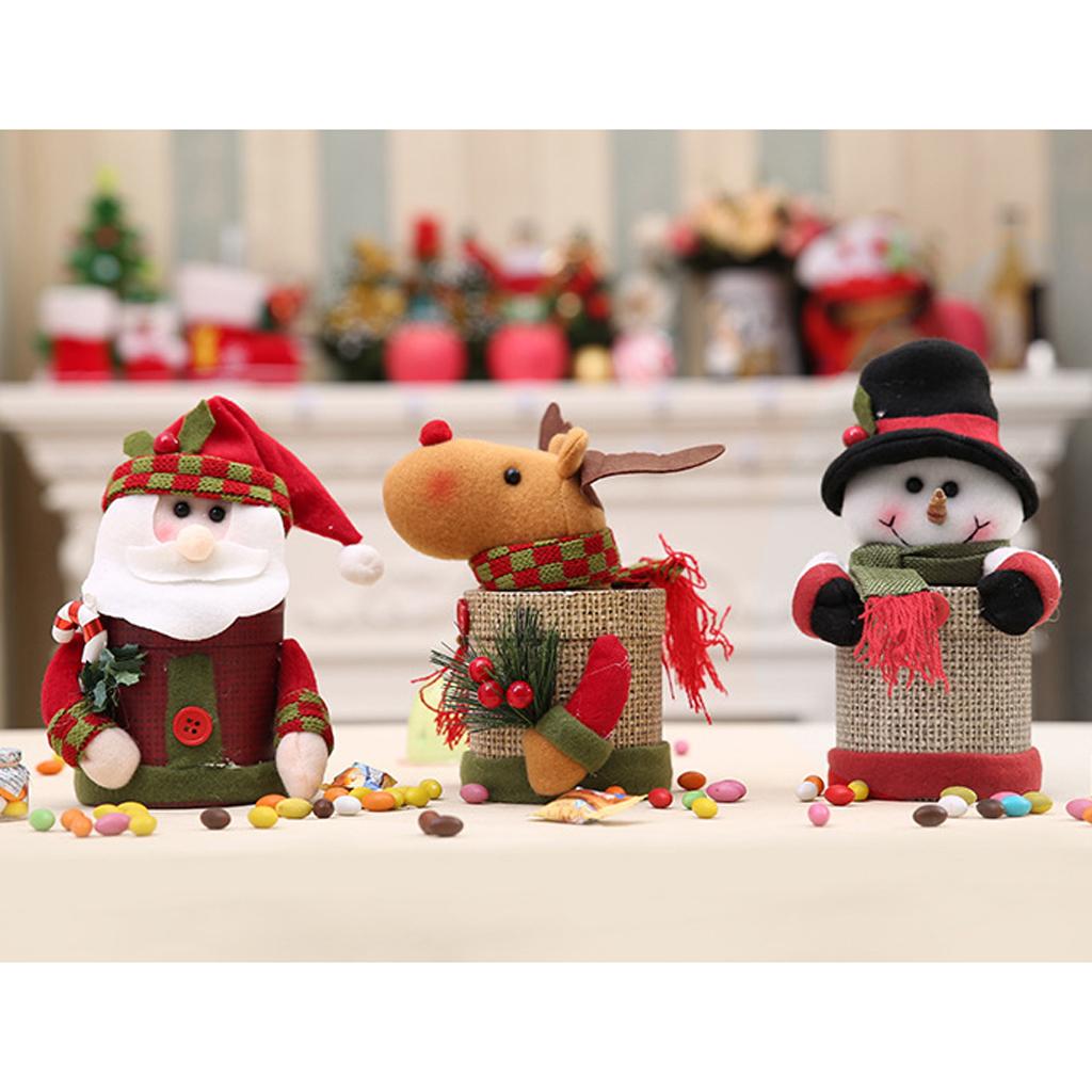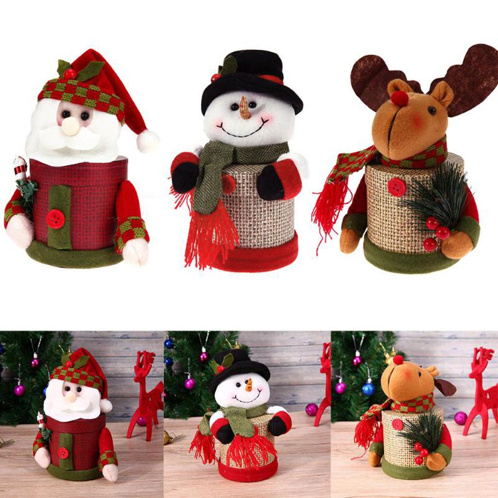 Christmas Kids Plush Stuffed Santa Snowman Candy Box Jar Xmas Container Gift Decorations centerpiece