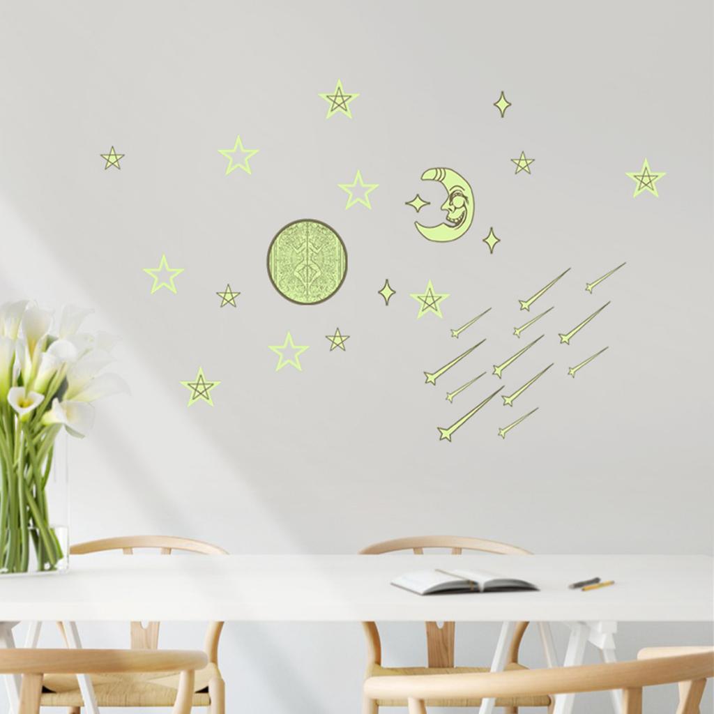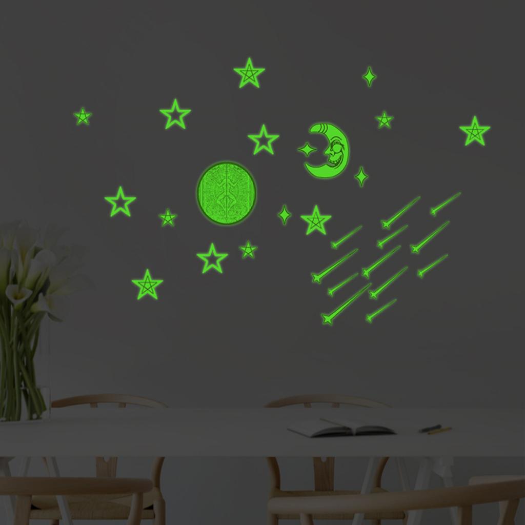 DIY home wall window glass Decor Lots Designs Pentagrams Stars in green color, glow in the darkness;