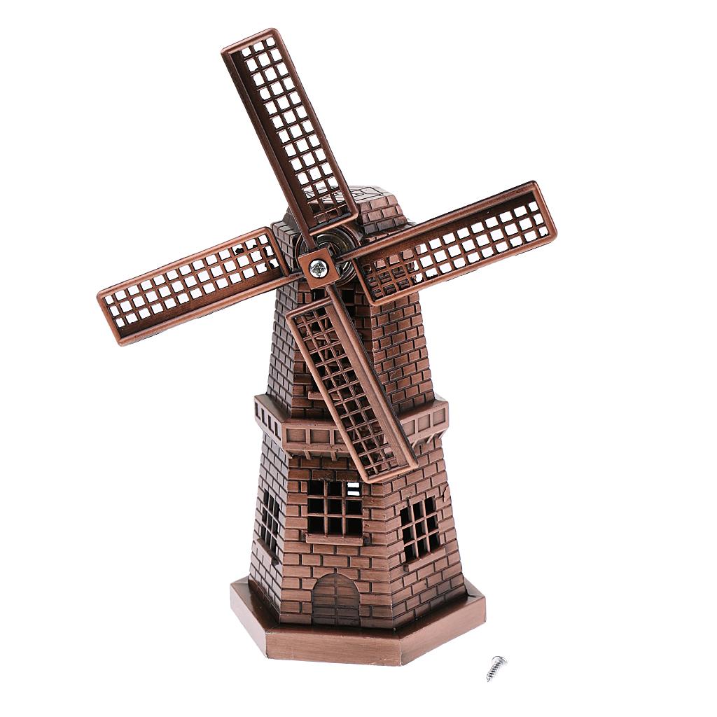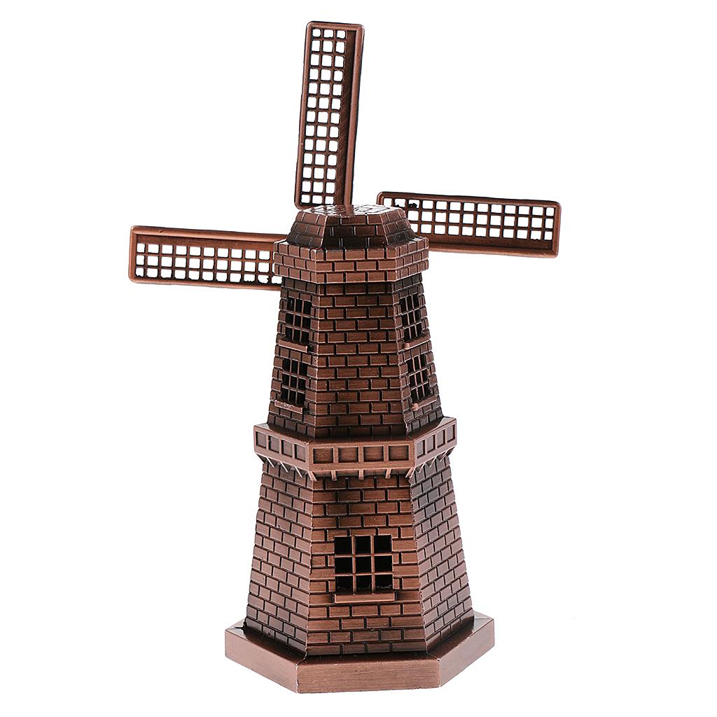 Copper Metal Dutch Windmill Model Statue Figurine Craft for Cafe Bar Decor