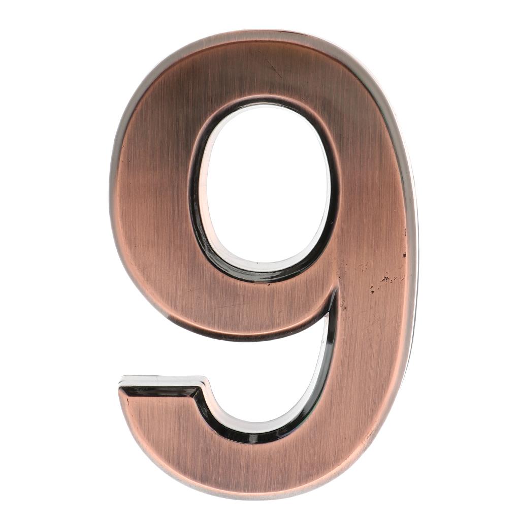 Copper Plastic Self-Adhesive Door Number Sign Sticky Numeric Digit Number 9