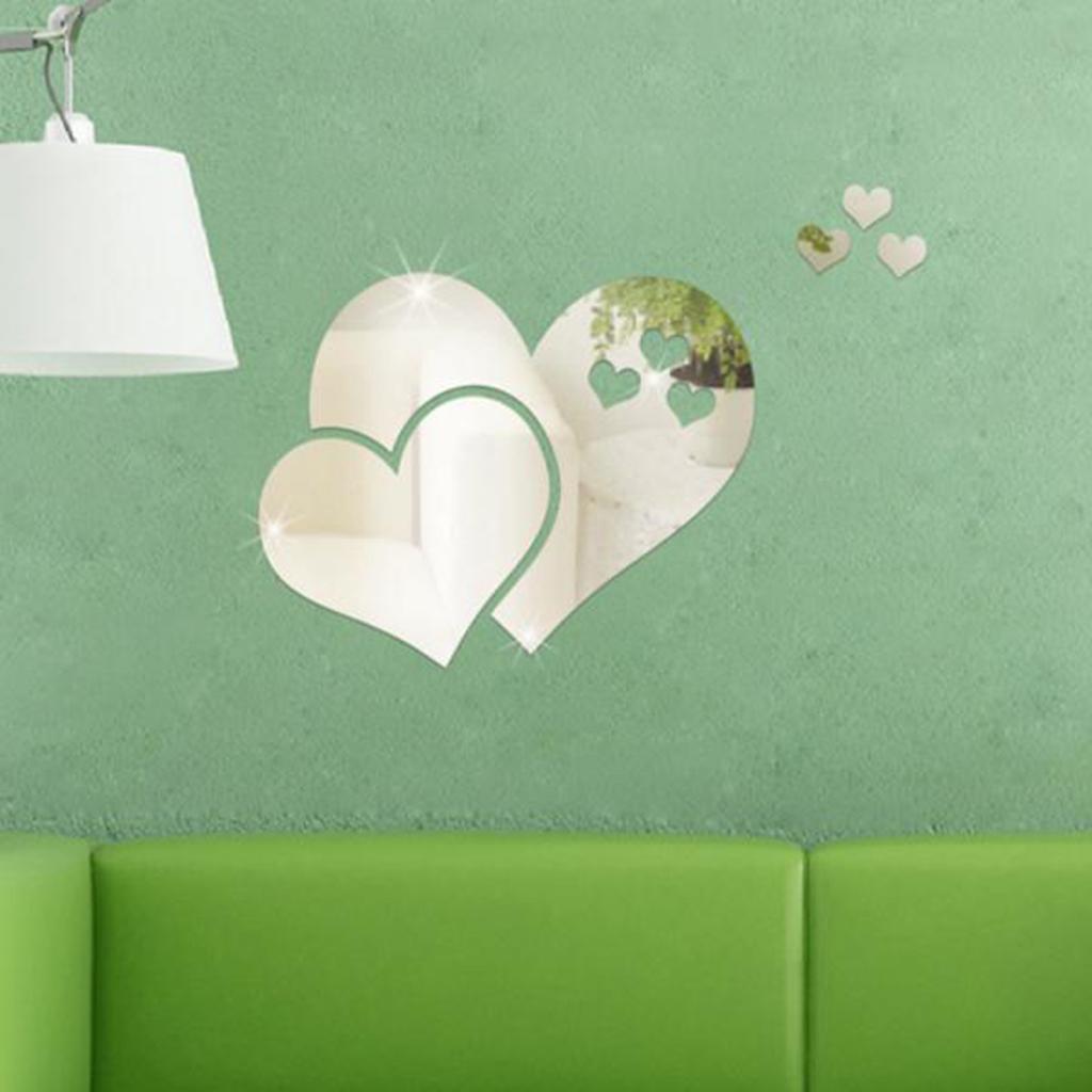 Creative LOVE Acrylic Vinyl Mural 3D Mirror Wall Stickers Room Decor Silver