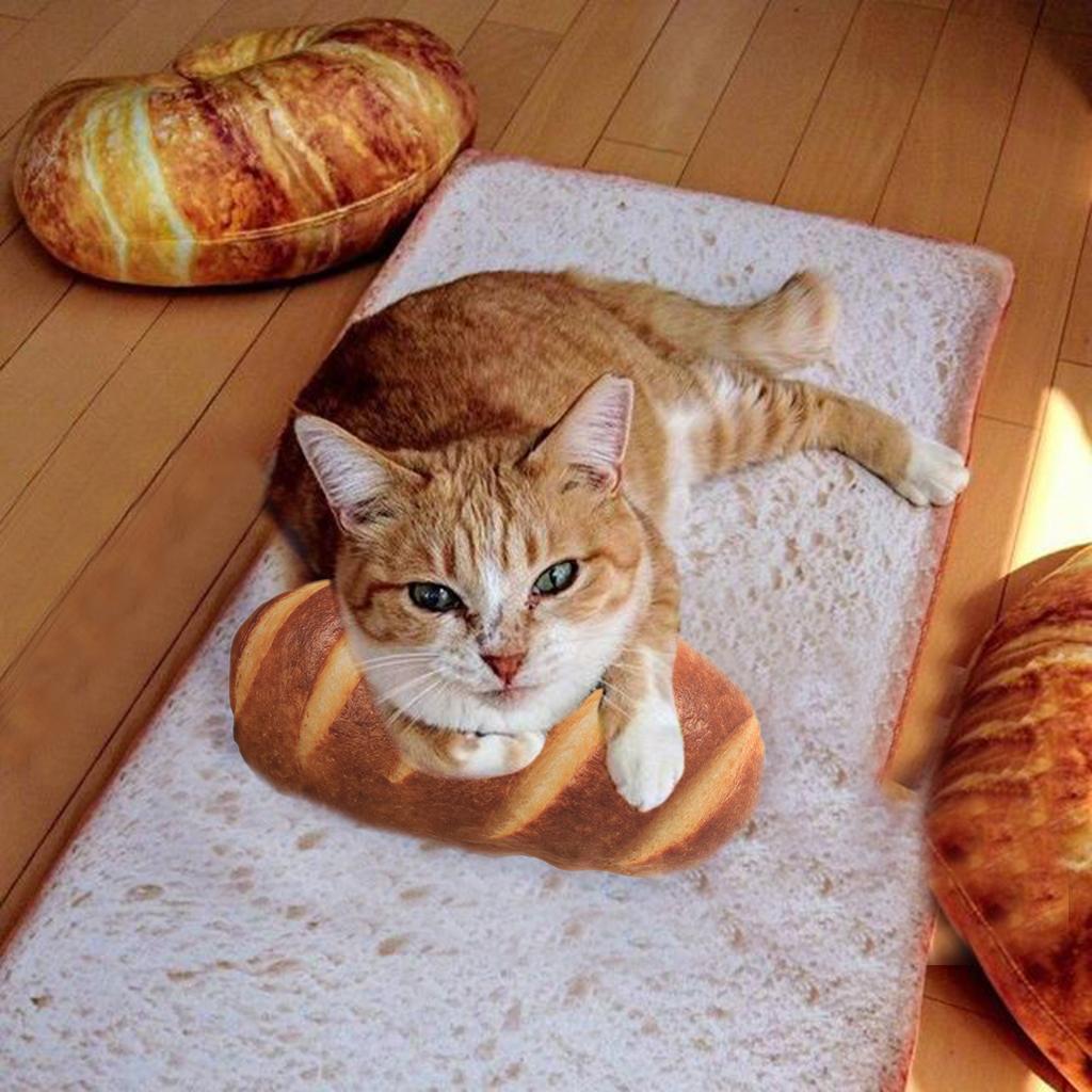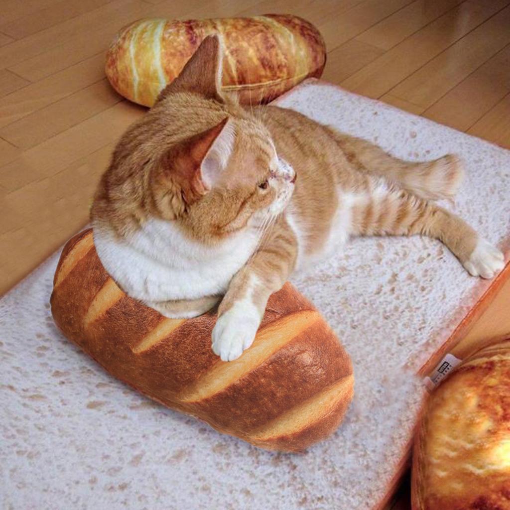 Creative Simulation Plush Bread Shape Pillow Plush Nap Cushion Pet Cat Toy Size L