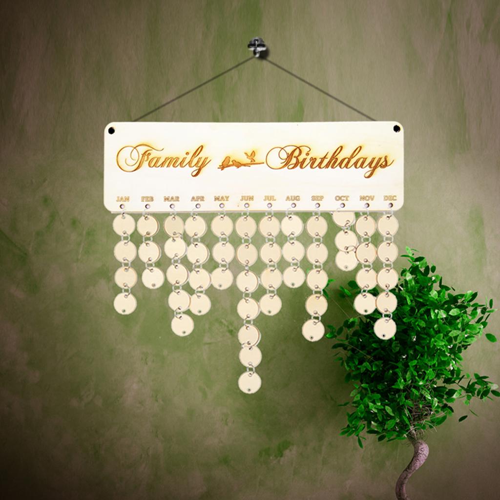 2.It is made of wood,All you have to do is write on the wooden disc the name and date and then hang it under the appropriate month, so you should never ever forget.