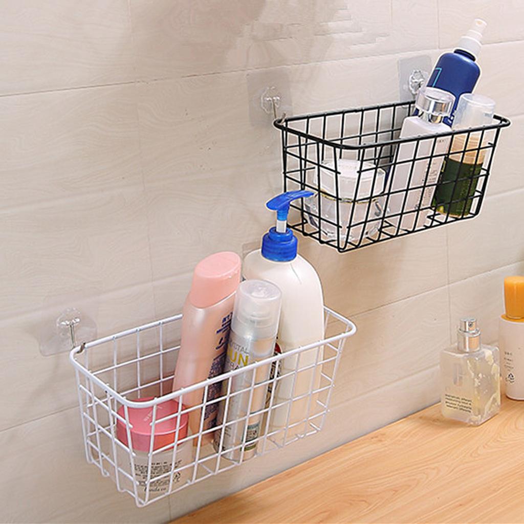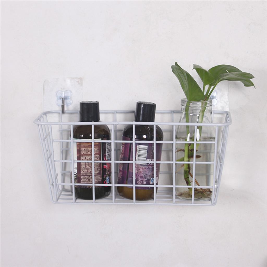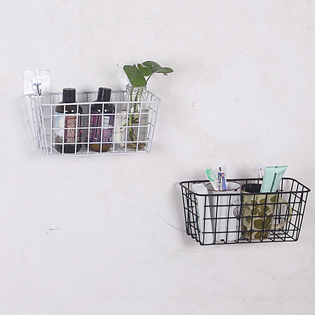 Metal Gird Hanging Basket Iron Wall Decor Storage Basket Black/White White