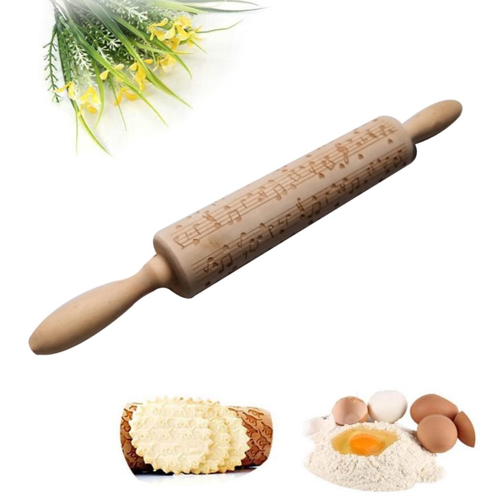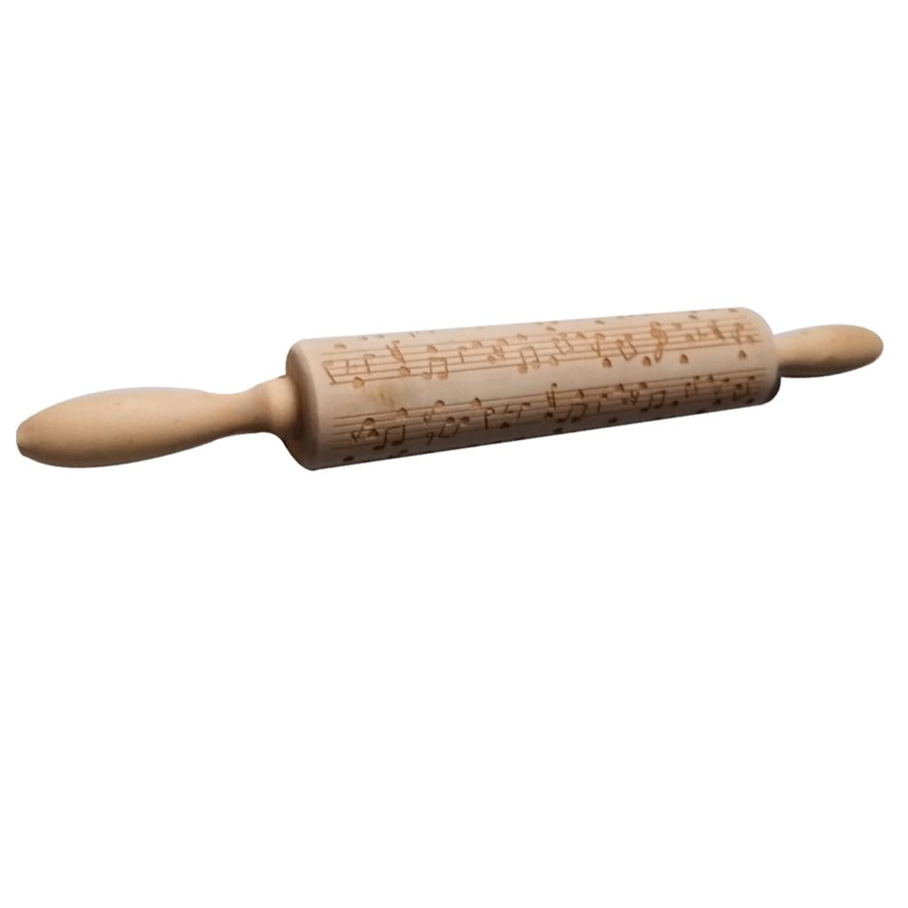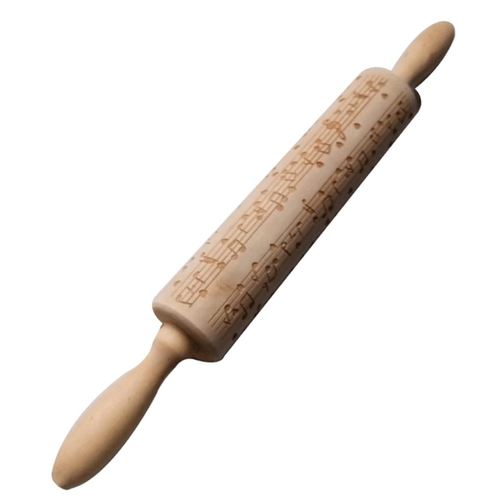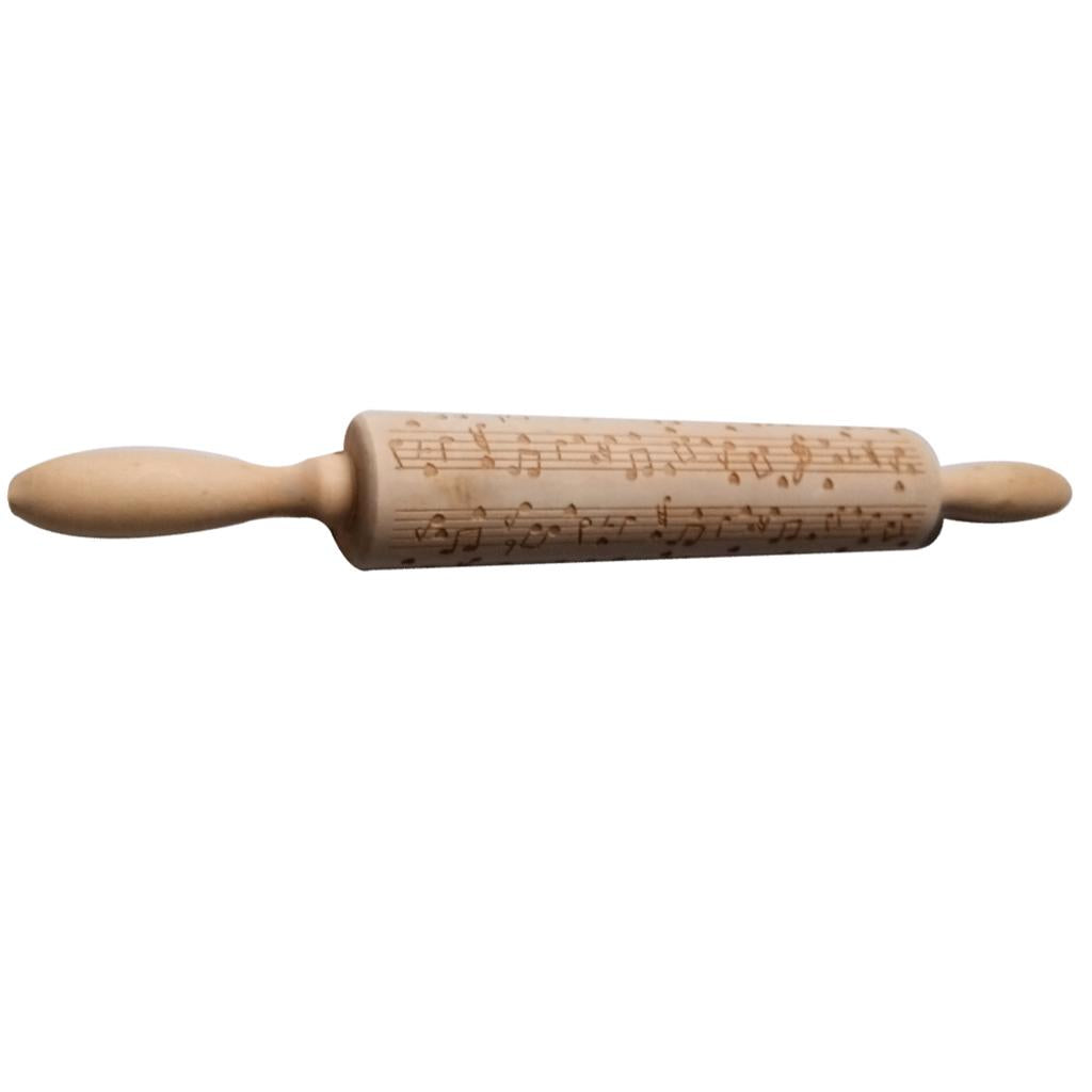 Exquisite and unique wooden rolling pin,with engraved musical note
