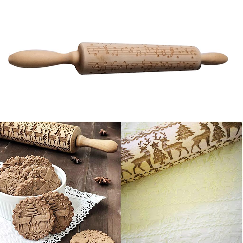 Home baking tool embossing wooden rolling pin cookies biscuit fondant kits
