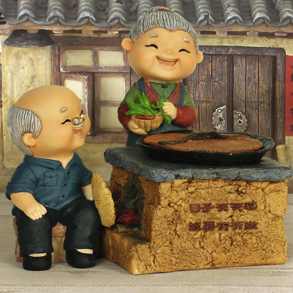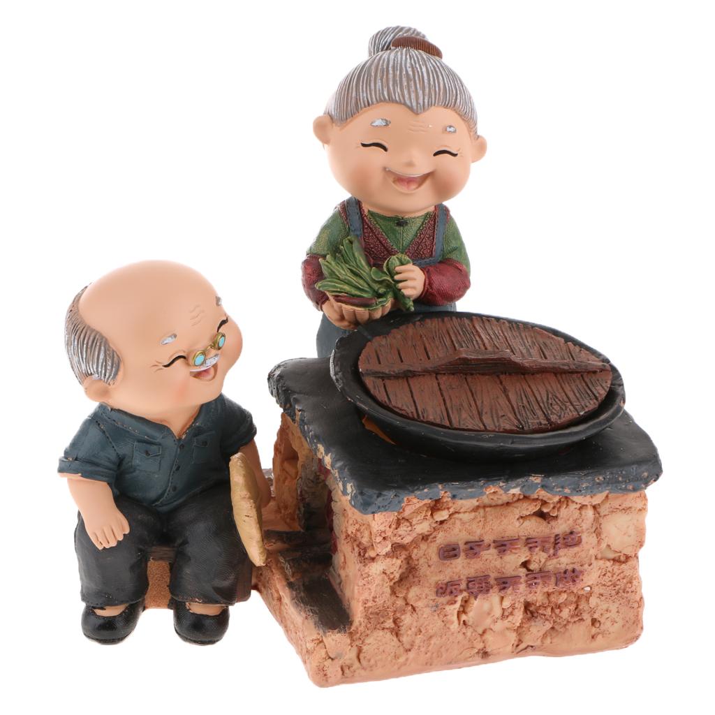 Old Couple Ornament Old Man Granny Home Decoration 03 Cooking
