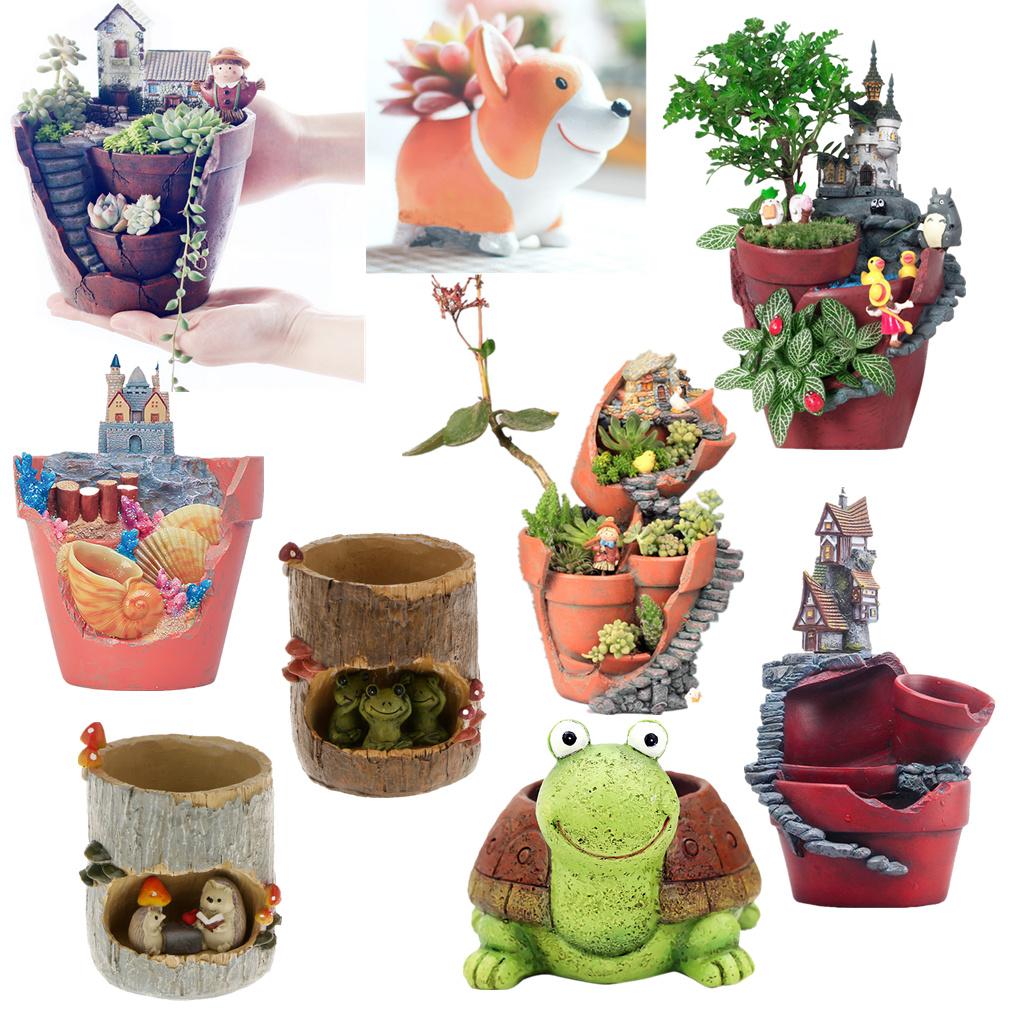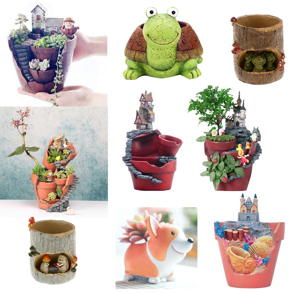 Resin Sky Garden Cacti Succulent Plant Flower Bed Pot Box Garden Planter