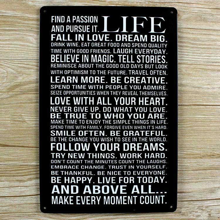 Retro Metal Tin Sign Plaque Vintage PASSION LIFE Picture Bar Pub Man Cave