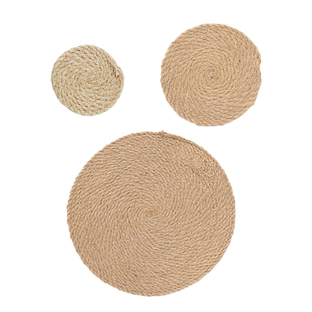 Round Flax Straw Woven Placemat Natural Heat Insulation Pad 3 Sizes S