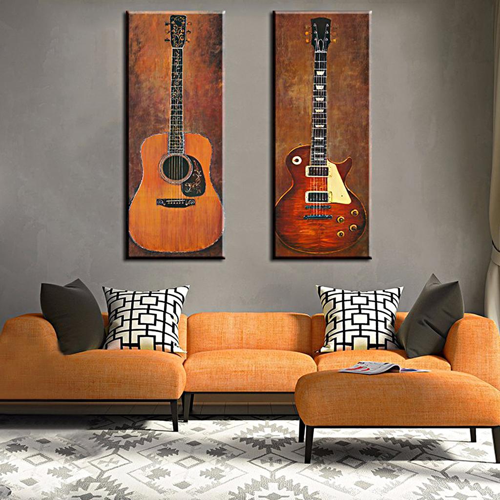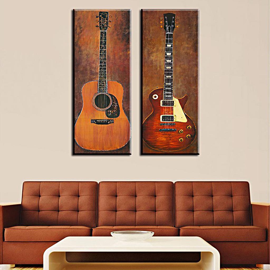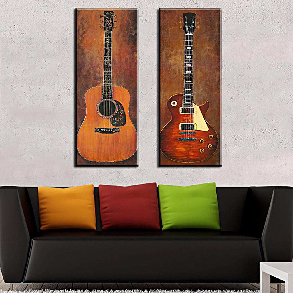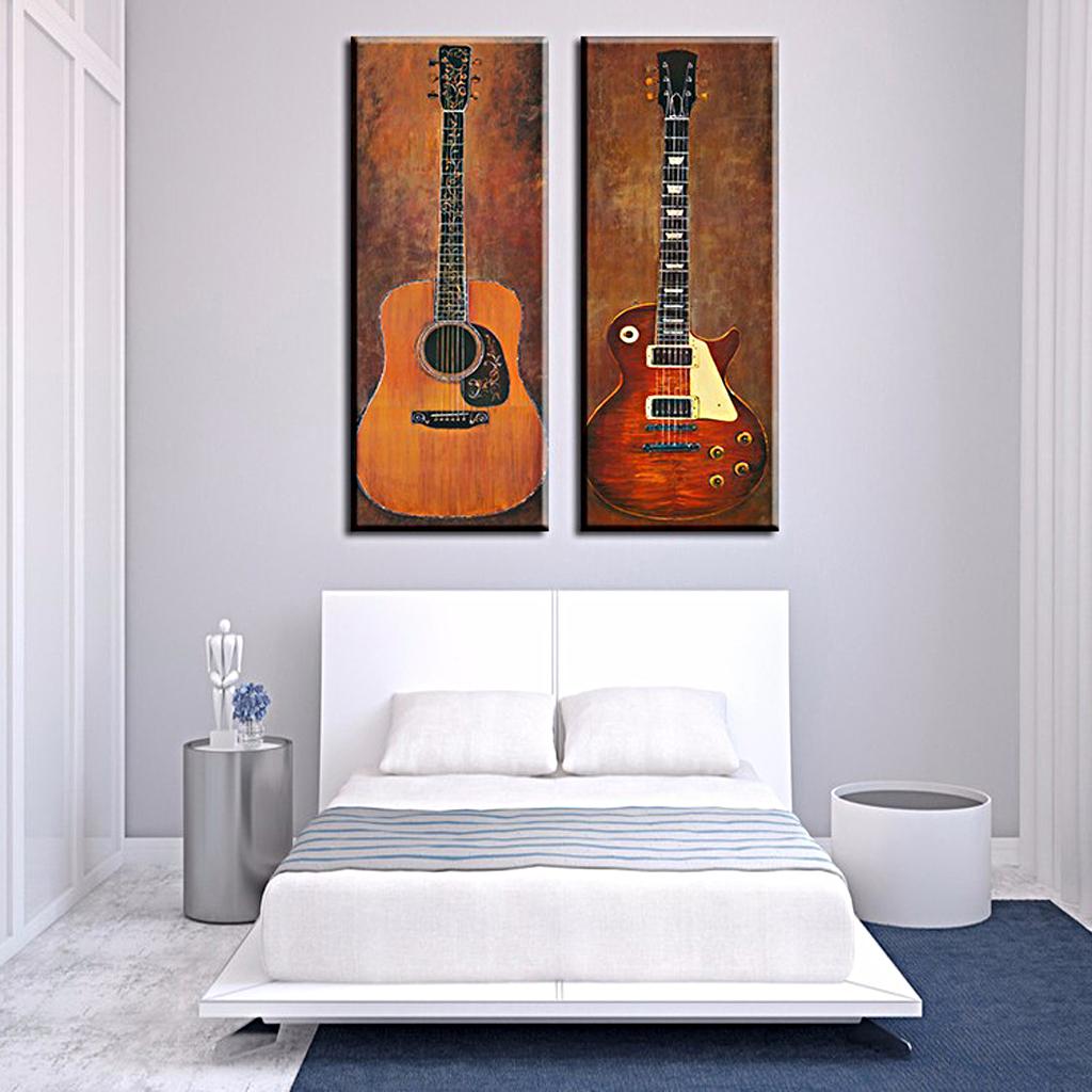 Set of 2pcs Canvas Wall Art Painting Pictures Guitar Print Hall Decor
