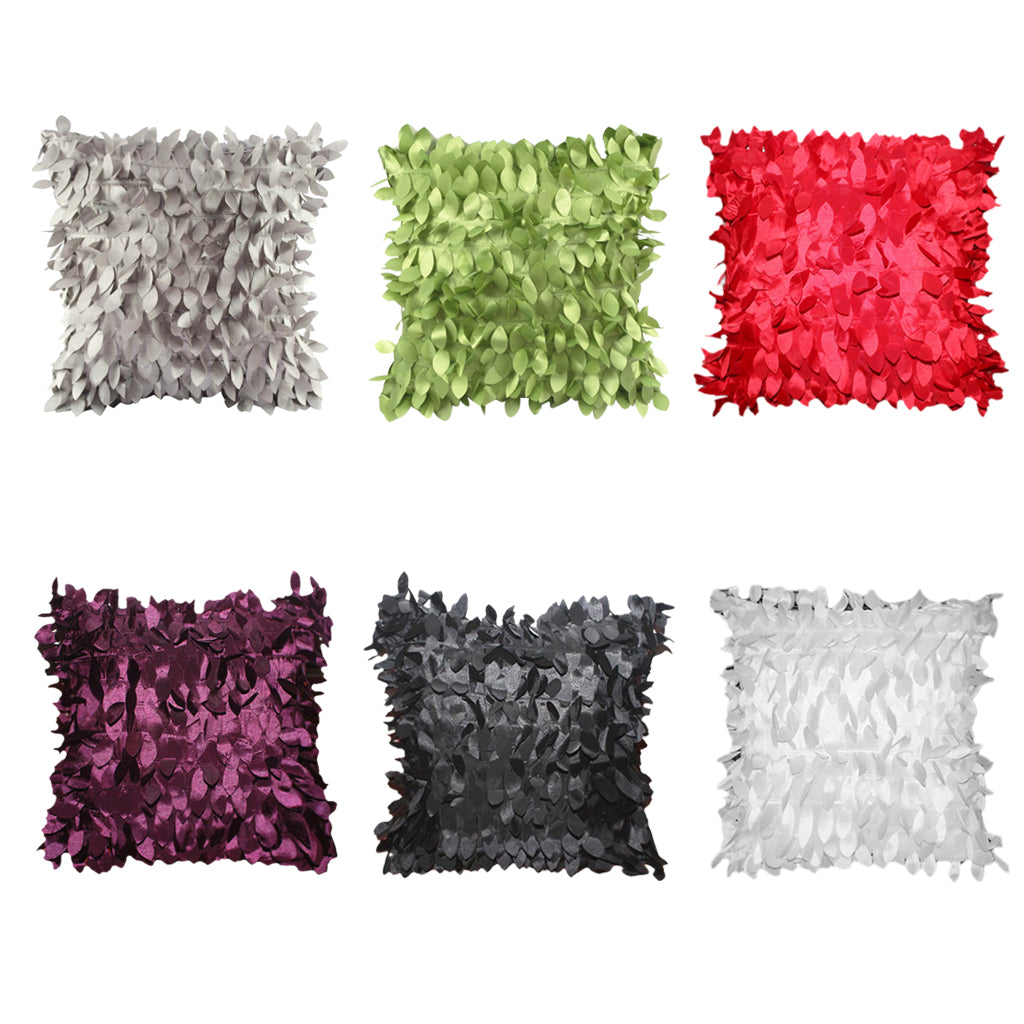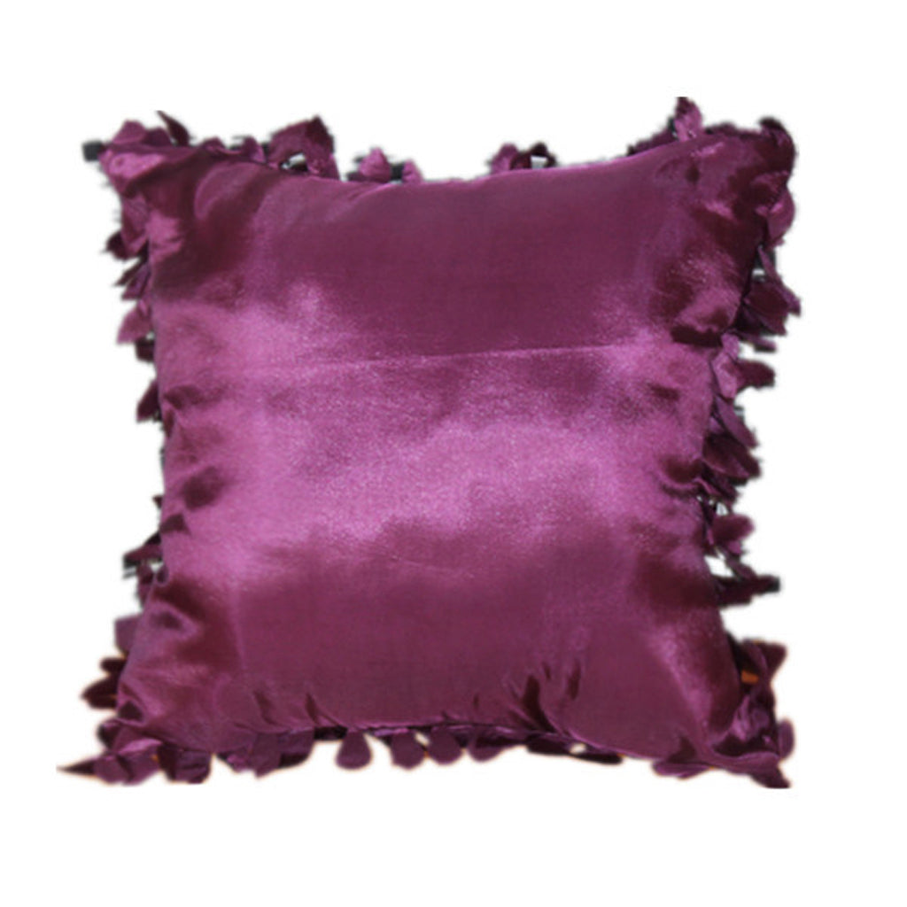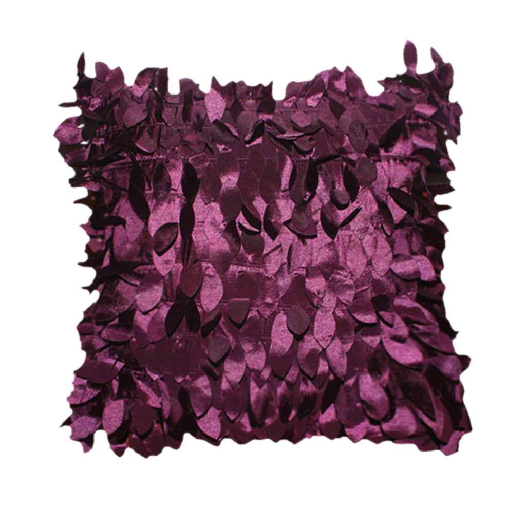 Shiny Satin Fallen Leaf Pillow Case Throw Cover Lounge Cafe Bar Home Decor Purple 42x42cm